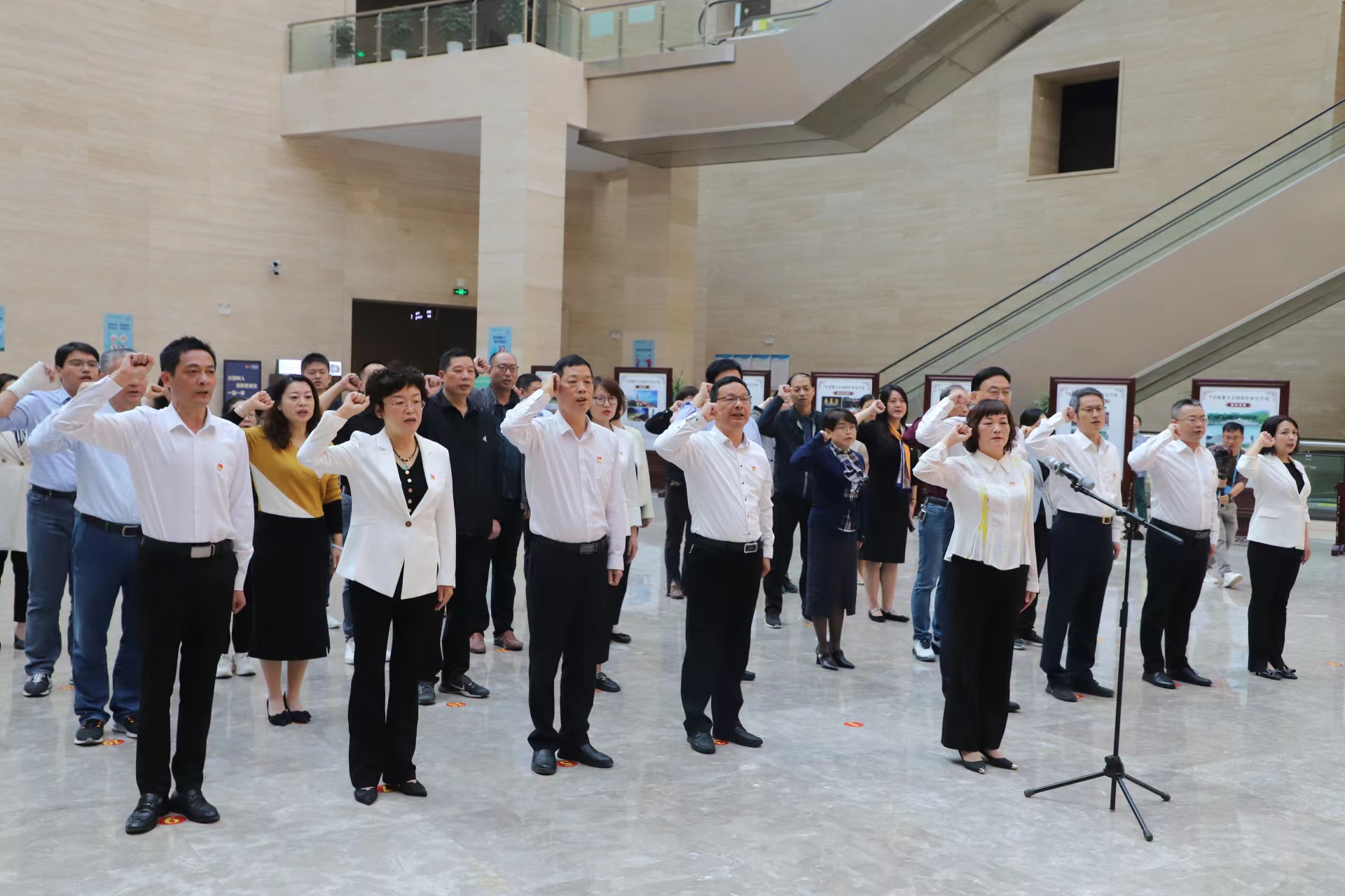 上午9時,在安慶市博物館中央大廳,面向鮮紅的黨旗,葉林霞帶領全體黨員干部重溫入黨誓詞,錚錚誓言下,校黨委的凝聚力和戰斗力得到了進一步加強,黨員干部為黨育人,為國育才的責任感、使命感得到了進一步提升,為黨的事業奮斗終身的決心更加堅定。