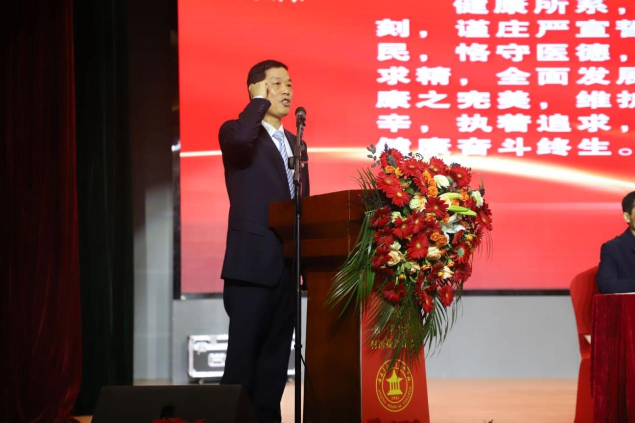 全體新生在主任醫(yī)師、副校長(zhǎng)毛以成的帶領(lǐng)下重溫醫(yī)學(xué)生誓言,進(jìn)一步堅(jiān)定了醫(yī)者的從業(yè)初心和救死扶傷的使命。