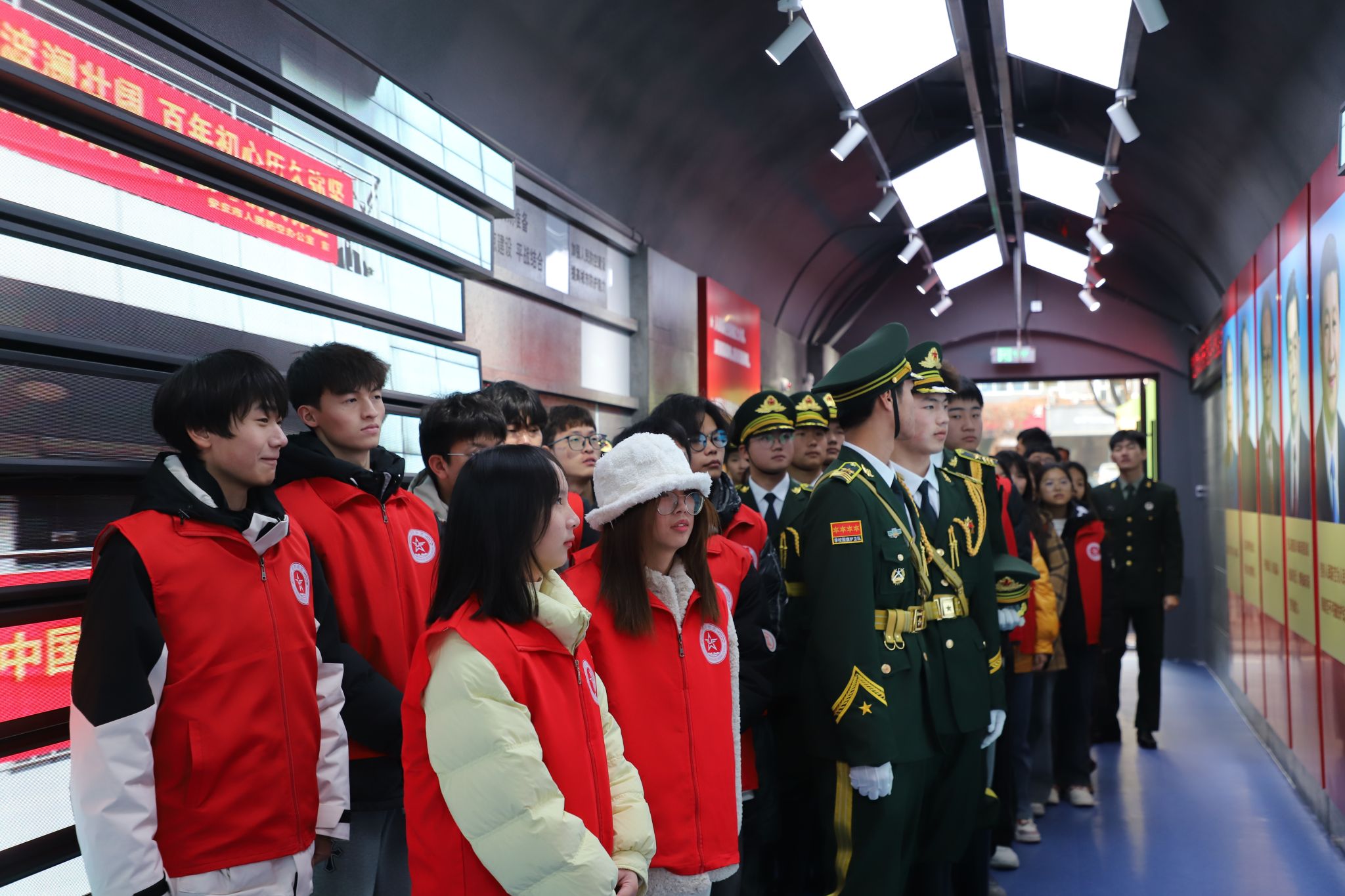 活動中,同學們通過沉浸式體驗參觀安慶市國防人防教育館,進行征兵宣傳主題實踐活動。同學們認真觀看了國防教育片,了解人防的由來、空襲兵器發展史以及各類災害預防的基本知識。講解員對每個板塊進行了專業講解,同時結合交通問答、應急救護、消防滅火、逃生結繩等進行安全教育,活動現場氣氛熱烈,志愿者們踴躍參與互動。