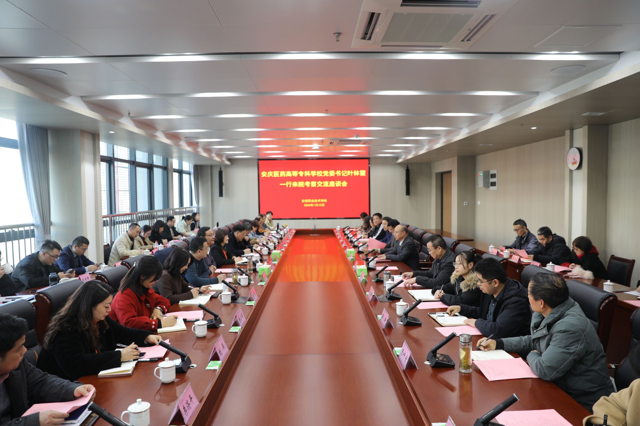2024年1月12日下午,校黨委書記葉林霞率隊赴安徽職業技術學院交流學習,校黨委副書記、校長朱慶豐,校領導張仕慶、陳燚、朱三九、朱雯、陳琪以及各二級單位負責人隨隊學習。
