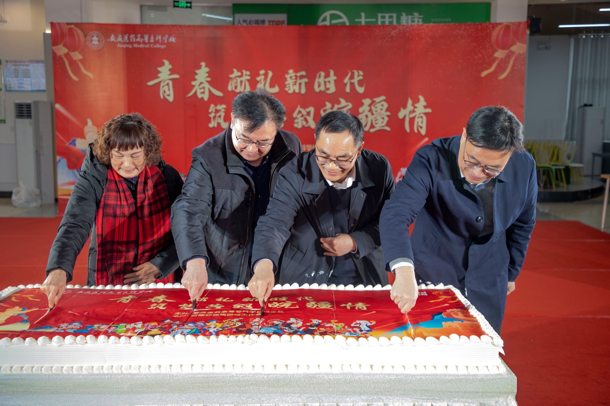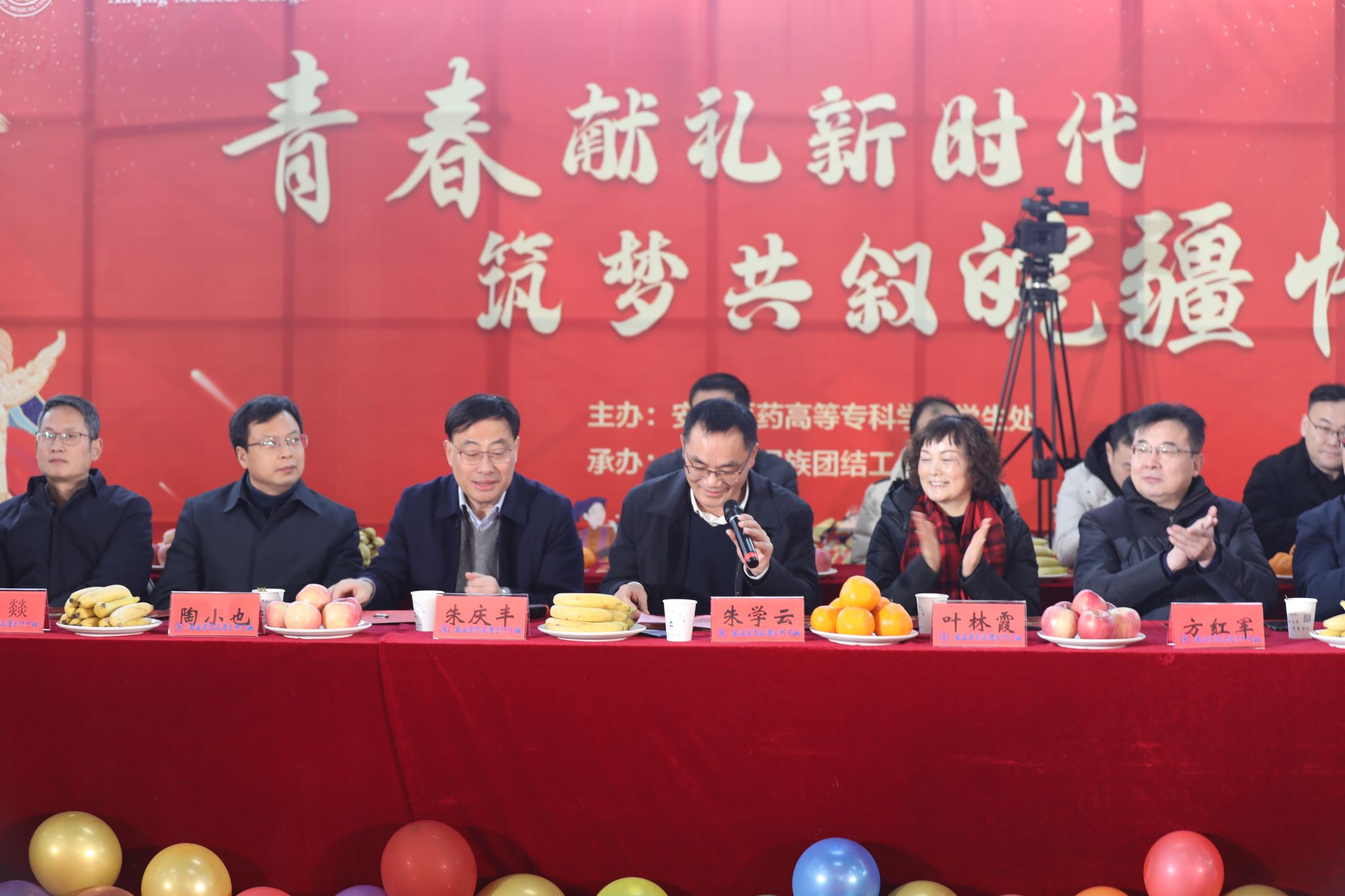 2024年2月6日,我校隆重舉行“青春獻禮新時代 筑夢共敘皖疆情”2024年新疆中職班新春聯歡會。安慶市人民政府副秘書長朱學云,安慶市委統戰部副部長、民族宗教事務局局長陶小也,安徽省教育廳思政處副處長方紅軍,安慶市教體局四級調研員吳宗亞、安慶市宜秀公安局政委李曉五等到校出席聯歡會。安慶市人大常委會副主任葉林霞,黨委副書記、校長朱慶豐,黨委副書記張仕慶、黨委委員、紀委書記陳燚、黨委委員朱三九、陳琪、劉毅及相關部門、學院負責人與全體中職班師生歡聚一堂,共慶新春佳節。