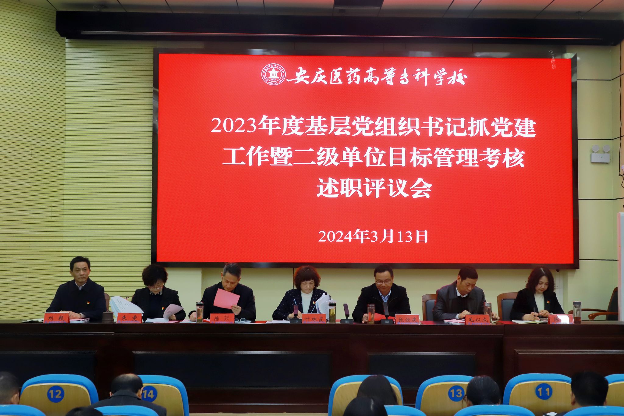 會(huì)議聽(tīng)取了附屬安慶中醫(yī)醫(yī)院、馬克思主義學(xué)院、醫(yī)學(xué)院、藥學(xué)院、護(hù)理學(xué)院、基礎(chǔ)醫(yī)學(xué)院、公共基礎(chǔ)學(xué)院、臨床試驗(yàn)科技學(xué)院和機(jī)關(guān)黨組織書記抓黨建工作述職,教務(wù)處、學(xué)生處、總務(wù)處、安全保衛(wèi)處、圖書館等二級(jí)單位負(fù)責(zé)人對(duì)本部門年度工作進(jìn)行了口頭述職,其他二級(jí)單位負(fù)責(zé)人和校管干部作了書面述職。