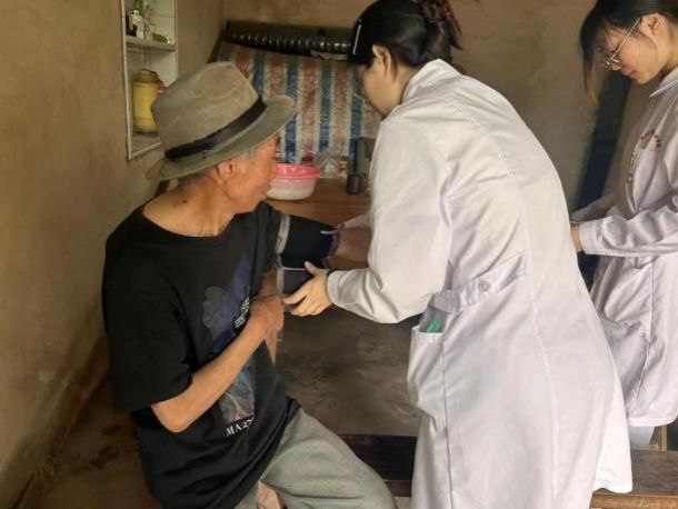 秉持為民初心,關愛一如既往。5月12日,護理學院志愿者服務隊深入周邊社區、村鎮,為患慢性病的老人進行入戶免費健康檢查,提供專業性醫療服務,講解健康小知識,提升服務對象的健康水平。