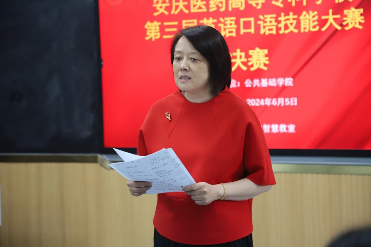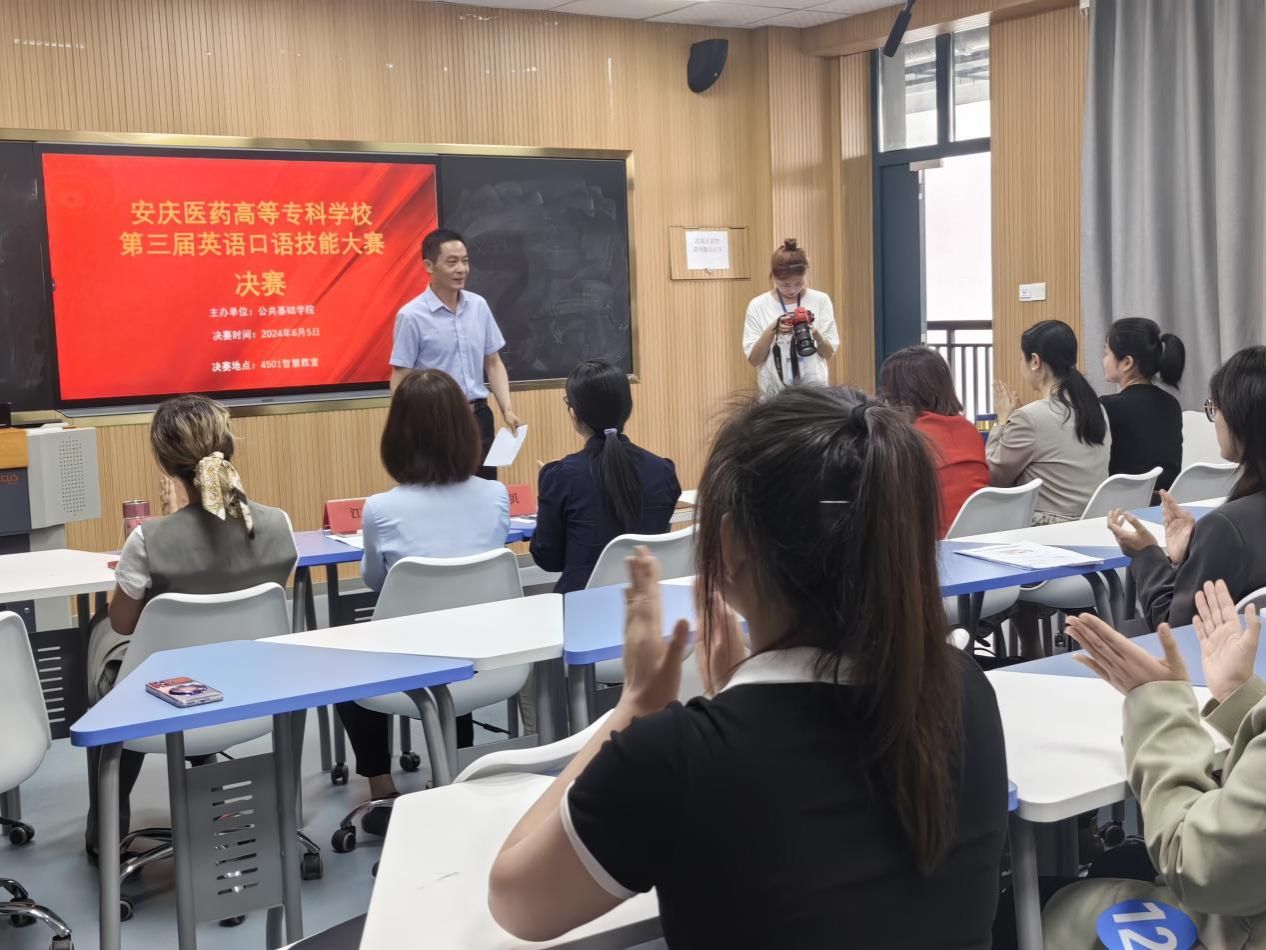 2024年6月5日,我校第三屆英語口語技能大賽決賽在4501智慧教室舉行。校黨委委員劉毅出席活動并講話。公共基礎(chǔ)學院教職員工和廣大同學參加活動。特邀安慶師范大學國際交流與合作處副處長涂王貝、安慶師范大學英語外教Imen Makdoudi女士、我校圖書館館長高旭、公共基礎(chǔ)學院副院長江慧和語言教研室教師錢秀娟擔任決賽評委。