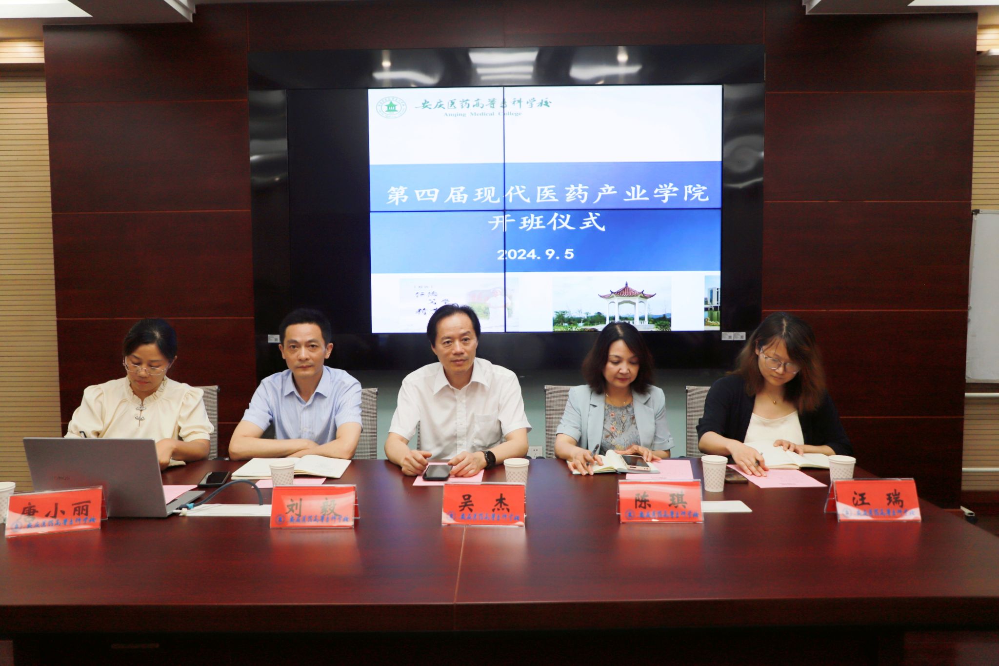 2024年9月5日下午,第四屆現代醫藥產業學院(2023級)開班典禮在藥學院實訓室一樓會議室隆重舉行。現代醫藥產業學院院長、長三角藥物高等研究院(簡稱“長高院”)黨支部書記吳杰,校黨委委員、黨政辦主任陳琪,黨委委員、藥學院黨總支書記、院長劉毅、相關處室負責人出席了本次開班儀式。