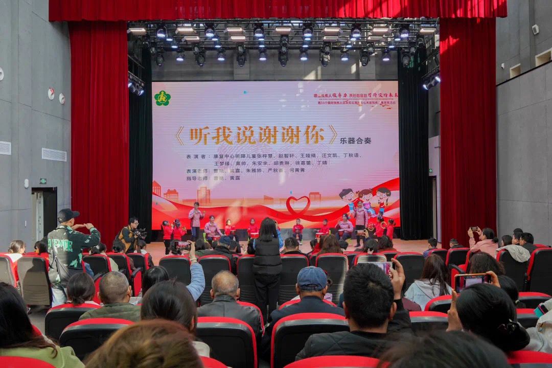 活動在歡快的樂器合奏中拉開帷幕,來自市殘疾人康復中心的聽障兒童和老師共同表演《聽我說謝謝你》,小提琴演奏合著孩子們輕快的鼓點,配合默契,贏得觀眾陣陣掌聲;此外,還有聽障兒童帶來的貫口表演《六尺巷》、歌舞表演《勇氣大爆發》、沐陽之家殘疾青年表演的律動鼓樂《小美滿》等,精彩的演出展示了殘疾兒童康復成果、更展現了他們積極陽光的心態和自強不息的精神風貌。活動中,愛心企業安慶市康明納包裝有限公司為參加演出的殘疾兒童、青年等以及康復中心全體兒童捐贈了價值2萬元的節日禮品。演出結束后,我校志愿者攜手殘疾兒童和青年共同打卡參觀青少年宮、少兒圖書館。