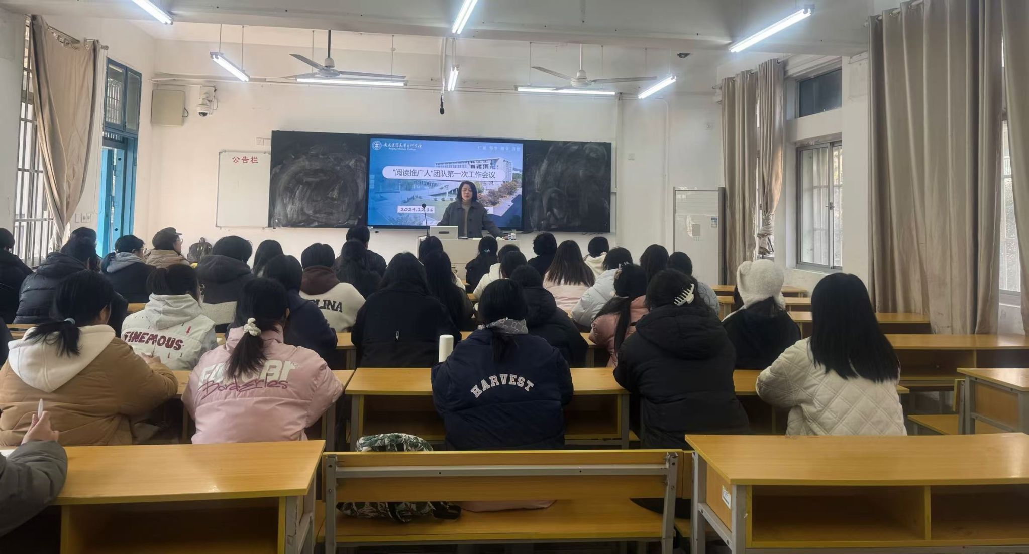 她還就各班級如何有效實施閱讀推廣活動提出了具體建議,并現場解答了同學們的疑問,強調了閱讀推廣活動不僅要精心策劃,還要加強活動過程的管理和結果的反饋;最后,她倡導閱讀推廣人發揮核心作用,動員更多同學積極參與閱讀活動,為后續圖書館各項閱讀賽事的順利開展打下堅實基礎!