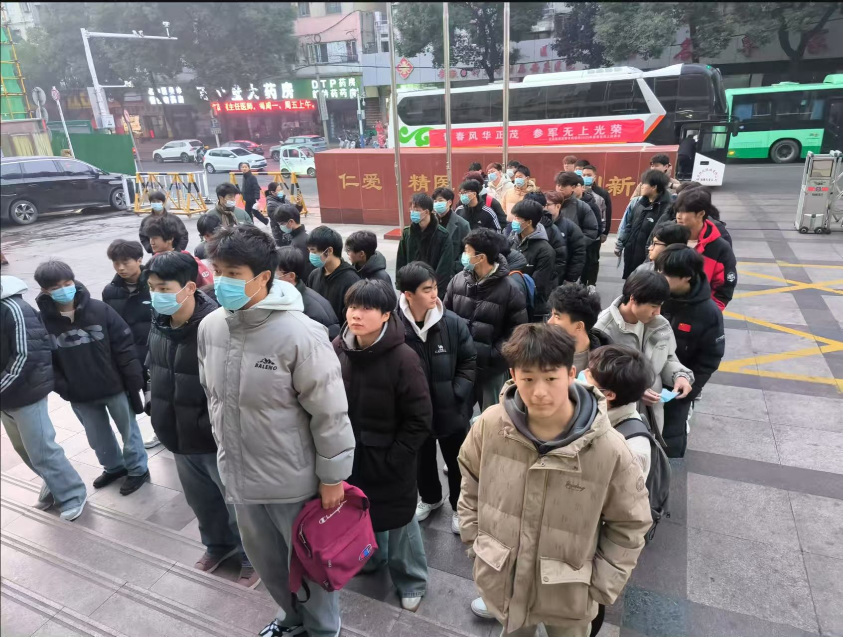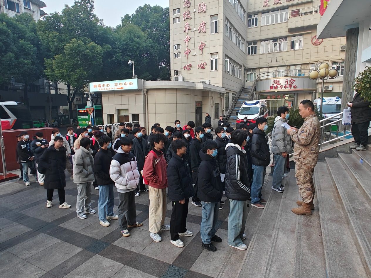 青春風華正茂,參軍無上光榮。為積極響應國防應征入伍工作,根據安慶市宜秀區及學校征兵辦相關工作安排,1月6日清晨,通過學校初審初檢的80余名學生,懷揣著對國防事業的崇高敬意與滿腔熱血,在學校征兵工作站老師的帶領下,前往安慶市第一人民醫院進行2025年春季征兵上站體檢工作。