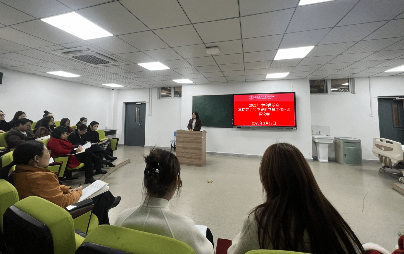 為了全面總結過去一年黨建工作成效,查找問題與不足,進一步明確未來黨建工作方向,推動學院黨建工作再上新臺階,3月17日,護理學院在護理學院實訓中心示教室組織召開了2024年基層黨組織書記抓黨建工作述職評議會議。學院全體師生黨員、部分師生代表參加了此次會議。會議由護理學院黨總支副書記路紅春同志主持。