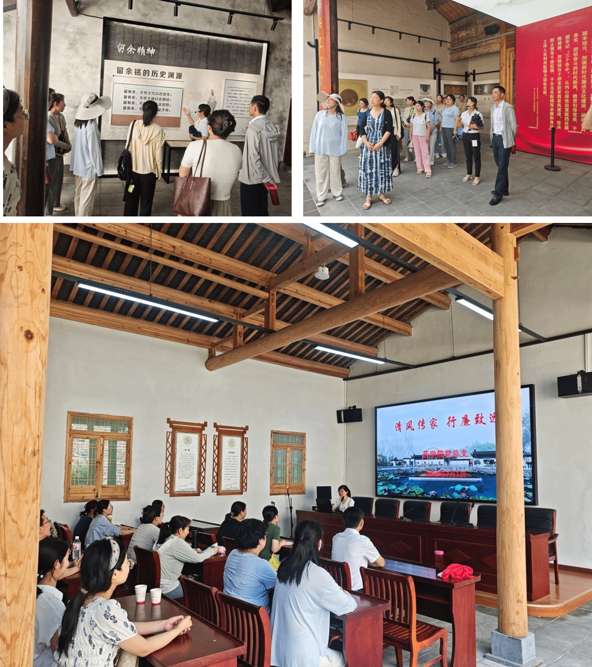 隨后,黨員們前往留余堂廉潔教育館。通過實地參觀和互動體驗,黨員們強化了廉潔自律意識,時刻提醒自己保持清醒頭腦,堅守廉潔底線,不忘初心,牢記使命。在留余堂內,藥學及實驗實訓中心黨支部書記孫加燕分享了活動心得,并為全體黨員上了一堂題為“清風傳家,行廉致遠”的廉潔黨課。她指出,廉潔并非 抽象概念,而是體現在日常工作的每一個細節中,如經費使用、學術評審、試卷審改等。她特別提到,實驗室等基建項目涉及巨額經費,校企合作中可能暗藏利益風險,一旦放松警惕,就可能讓“治病救人,立德樹人”的崇高事業淪為腐敗的溫床。她號召全體黨員以“紅源精神”為指引,以“留余家訓”為警醒,在藥學領域書寫無愧于時代的初心答卷。