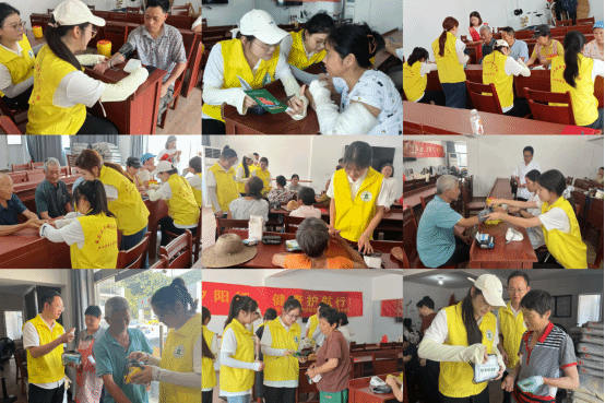上午,志愿服務隊來到了七都鎮銀堤村,利用專業知識和技能,開展了對銀堤村村民的便民義診活動。在專業教師精心的指導下,隊員們秉持高度的責任感和使命感,對村民的健康狀況進行全面而深入的調研。通過一對一的咨詢,隊員們詳細了解村民的身體狀況及日常飲食習慣,現場為村民提供測量血壓、檢測血糖等服務。此外,隊員們還針對夏季常見病、老年人慢性病的預防管理等相關知識進行了詳細講解,普及健康知識,用實際行動傳播醫學知識,賦能健康先行。活動的最后,隊員們給村民發放了精心準備的防暑降溫物資,在傳遞了醫學知識的同時,還傳遞了夏日的清涼,贏得了村民們的高度贊譽。
