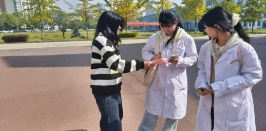 事務中心成員與學生志愿者組成多支宣傳小隊,深入宿舍樓道、教學樓大廳、食堂門口、圖書館出入口等人員密集區域,逐一向過往學子發放宣傳手冊。面對同學們提出的關于醫保參保的問題,事務中心成員結合手冊內容與實際案例,耐心細致地逐一解答,確保每一位學子都能清晰了解自身參保權益。
