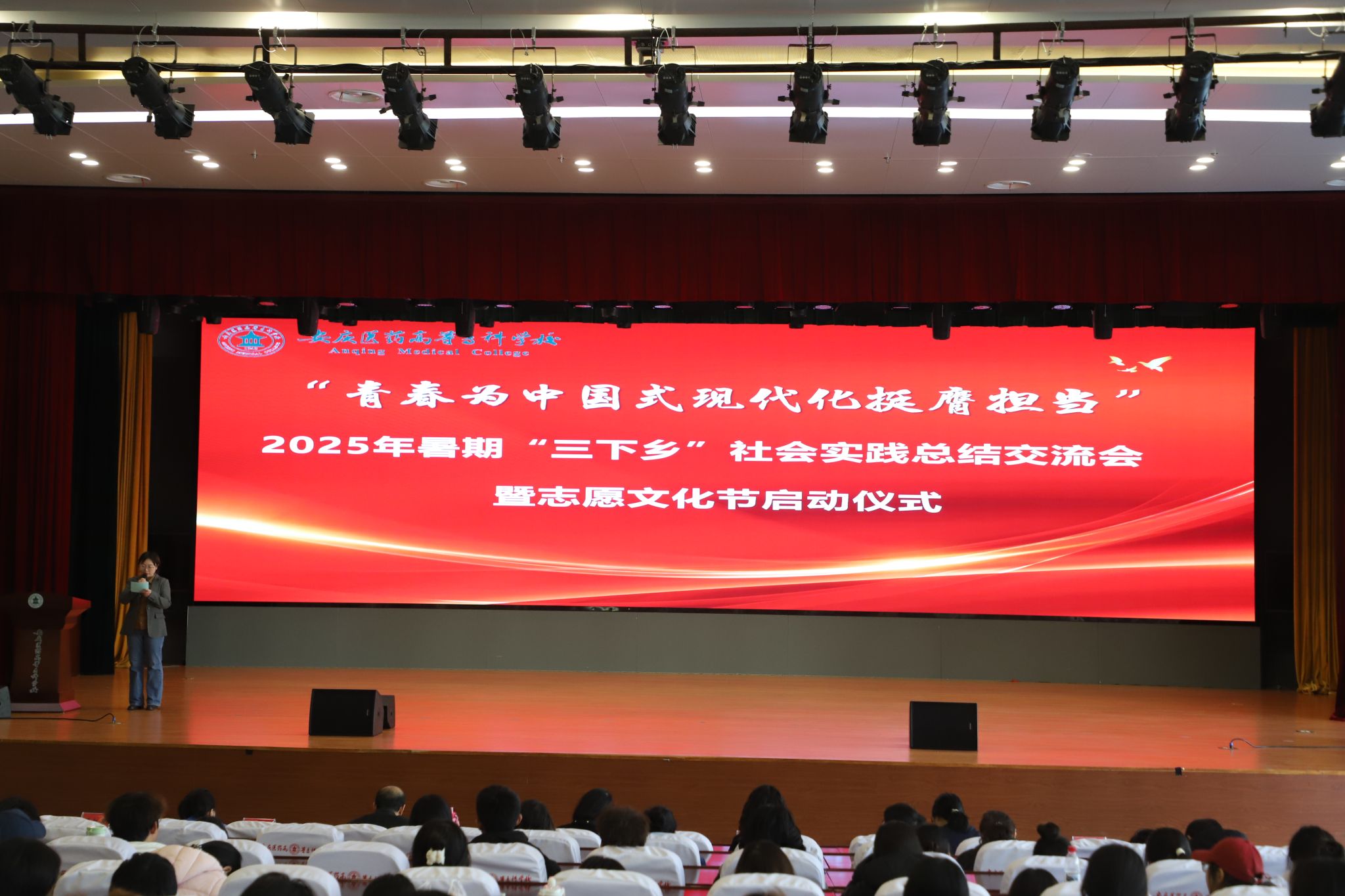 11月27日,以“青春為中國式現代化挺膺擔當”為主題的2025年安慶醫(yī)藥高等專科學校暑期“三下鄉(xiāng)”社會實踐總結交流會暨志愿文化節(jié)啟動儀式在學校百花亭報告廳舉行。校黨委委員、黨政辦主任陳琪,馬克思主義學院、醫(yī)學院、學生處、藥學院、護理學院、臨床試驗科技學院負責人受邀出席活動,2025年暑期三下鄉(xiāng)各實踐團隊師生代表,學校各級共青團干部,齊聚現場,共同回顧實踐成果、開啟志愿新篇。