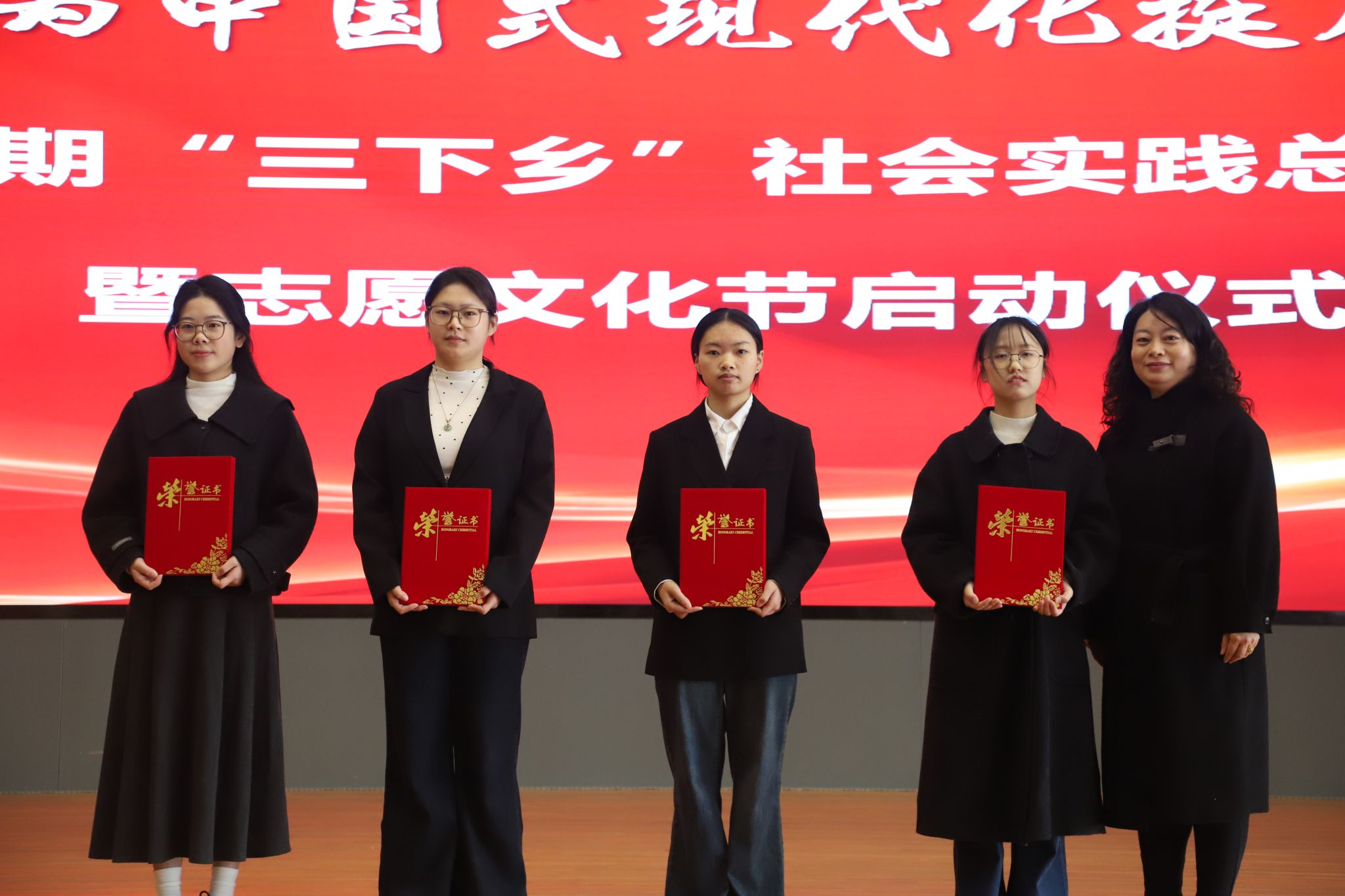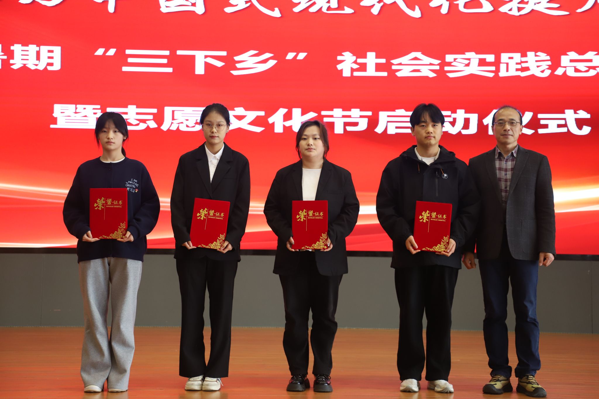 為表彰先進、樹立榜樣,參會領導受邀為獲得校級暑期“三下鄉(xiāng)”先進個人,優(yōu)秀調研報告,優(yōu)秀實踐團隊代表及優(yōu)秀組織頒獎,激勵全體師生以先進為標桿,在實踐與志愿道路上勇毅前行。