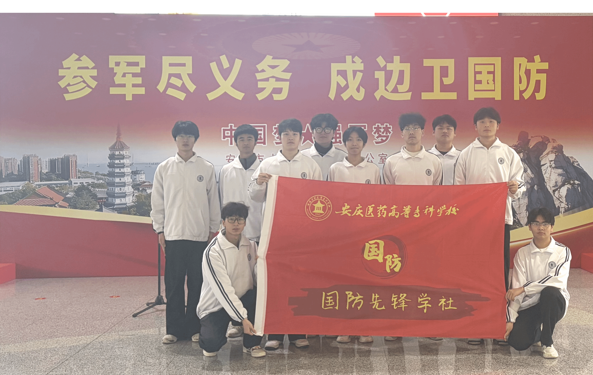 3月16日,安慶醫藥高等專科學校“國防先鋒學社”積極響應號召,組織學生志愿者參與安慶市2026年上半年新兵入伍歡送大會的現場志愿服務。