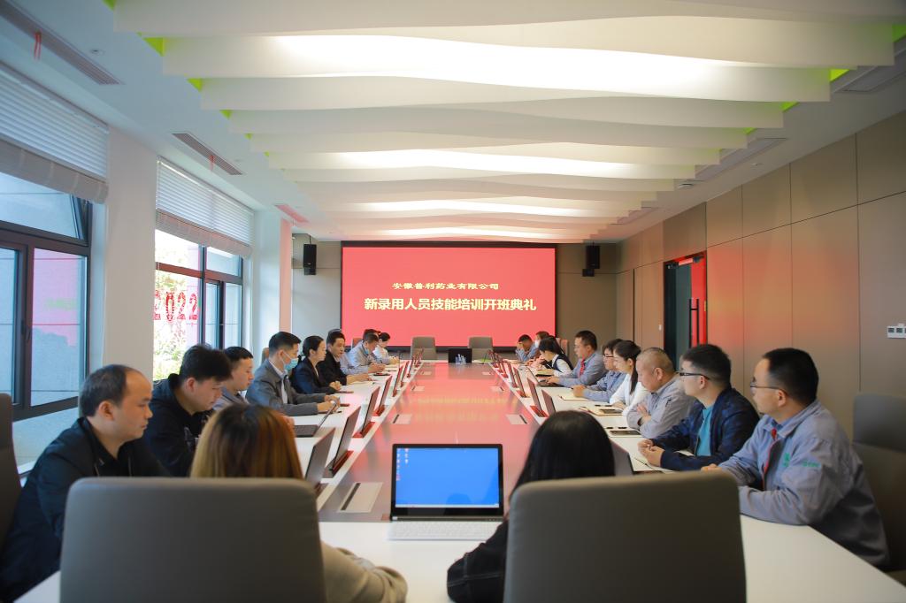 5月17日,我校在安徽普利藥業有限公司順利開展新一期新錄用員工技能培訓班。普利藥業有限公司廠長聶良鄧,高新區人社局主管石愛青、謝曉虎,我校黨委委員藥學院院長劉毅、繼續教育學院副院長孫坤及相關人員出席開班典禮。本次共50人參加培訓。