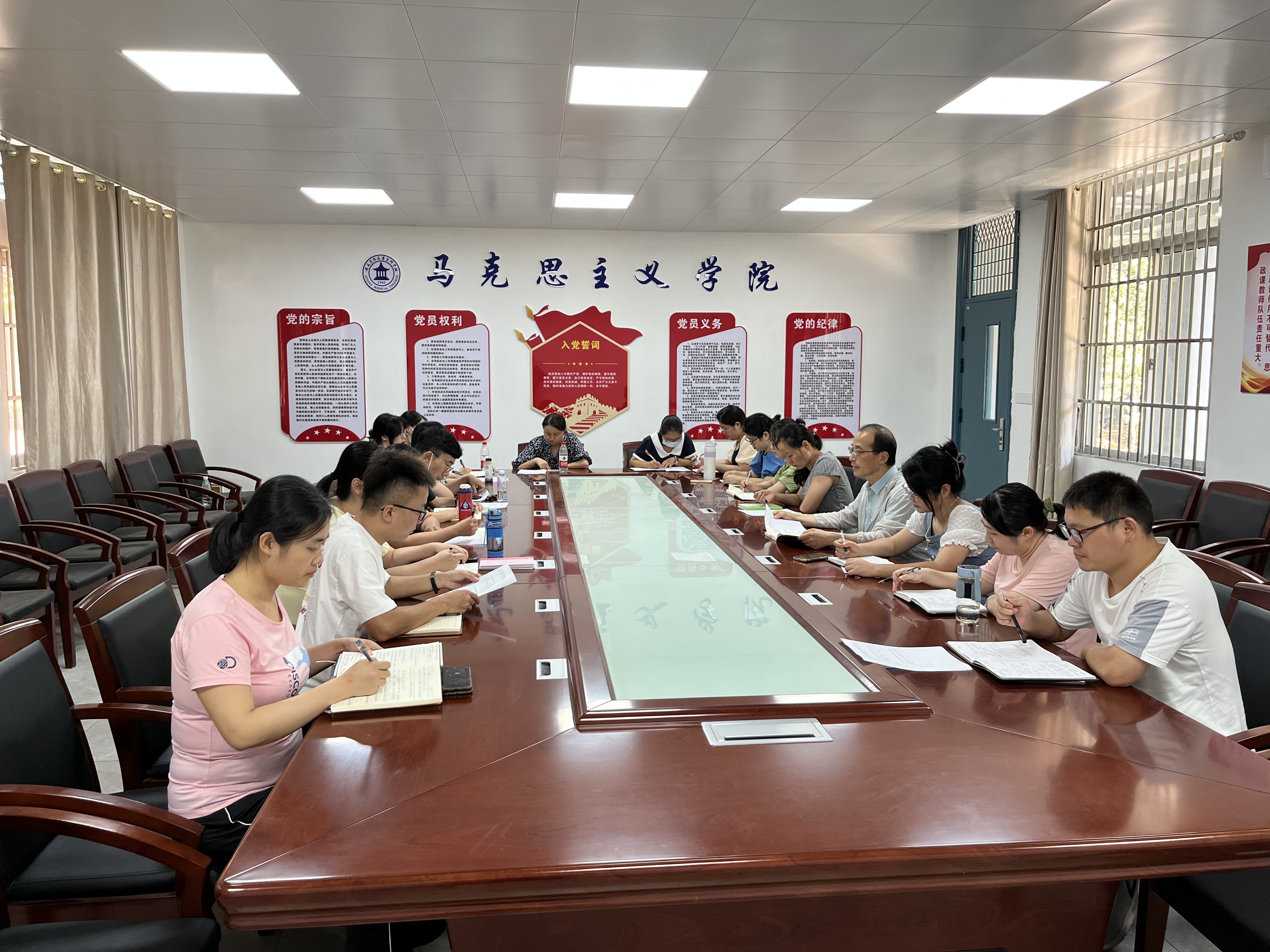 會上,陸勝利首先帶領大家一起學習了近期教育部等十部門印發(fā)的《全面推進“大思政課”建設的工作方案》,并提出了在新學期要進一步落實好馬院各教研室互相聽課制度、認真開展好集體備課活動等,切實把馬院的各項工作推上新的臺階。其次,陸院長向大家傳達了學校疫情防控工作的各項要求,馬院全體教師要進一步提高政治站位,全面落實學校疫情防控工作要求和省市各項工作安排,繃緊思想認識之弦,堅持慎終如始,堅決克服麻痹思想、厭戰(zhàn)情緒、僥幸心理、松勁心態(tài),堅決扛起疫情防控政治責任。