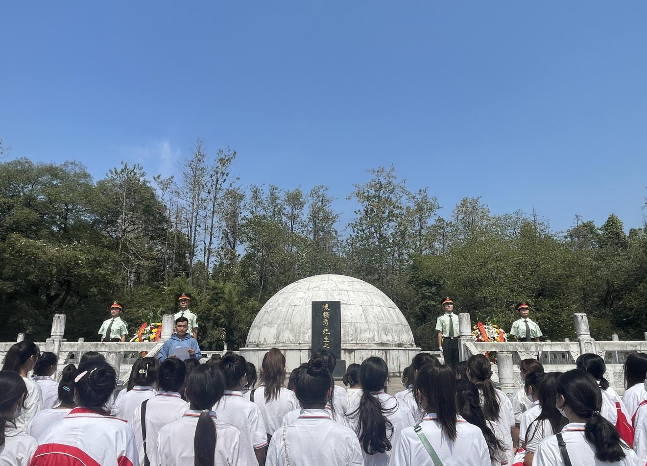 正值今年9月30日我國第九個烈士紀念日,全體師生前往陳獨秀紀念園,舉行以“踏尋先輩足跡·賡續紅色基因”為主題的緬懷活動。師生們滿懷敬仰之情,先后聆聽了陳獨秀先生的生平事跡,參觀巍然聳立于綠水青山間的“驚雷”浮雕、獨秀牌坊、《新青年》雕像、紀念水池與陳獨秀墓冢,并向陳獨秀烈士墓前獻上花圈,駐足、深思、鞠躬、追思為民族獨立、人民解放、國家富強和人民幸福英勇獻身的陳獨秀先生。