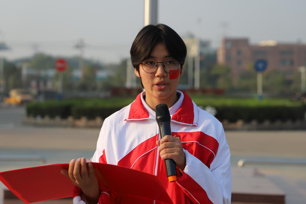 在雄壯豪邁的國歌聲中,鮮艷的五星紅旗冉冉升起,全體師生肅然靜立,凝眸注視,送上了對祖國最美好的祝福。我校中職班學生、青馬班成員團員代表熱依拉·巴拉特同學做國旗下演講,她以挺拔的身姿、質樸的話語向祖國表達“請黨放心,強國有我”的決心。