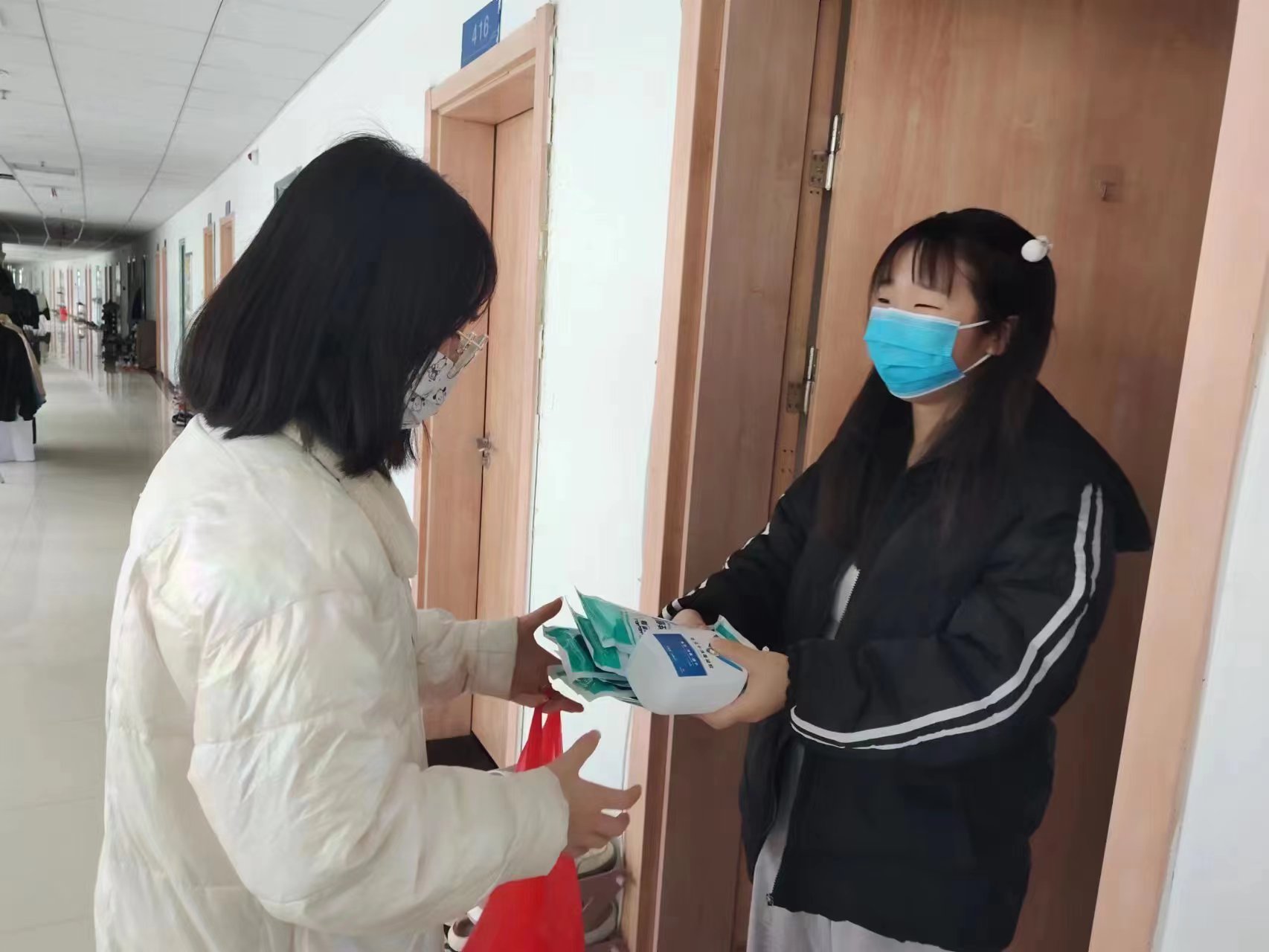 12月2日,學(xué)校召開在校班級學(xué)管和輔導(dǎo)員工作會議。會上校領(lǐng)導(dǎo)十分關(guān)心校外“雙主體”班級同學(xué)的學(xué)習(xí)生活、防疫物資配備等情況,立即協(xié)調(diào)醫(yī)學(xué)院、總務(wù)處等部門,及時配備防疫物資,當(dāng)天下午由醫(yī)學(xué)院輔導(dǎo)員送去一次性醫(yī)用防護口罩、免洗手消等物資,為安慶市第一人民醫(yī)院“雙主體”班級同學(xué)送去一份溫暖和關(guān)愛。