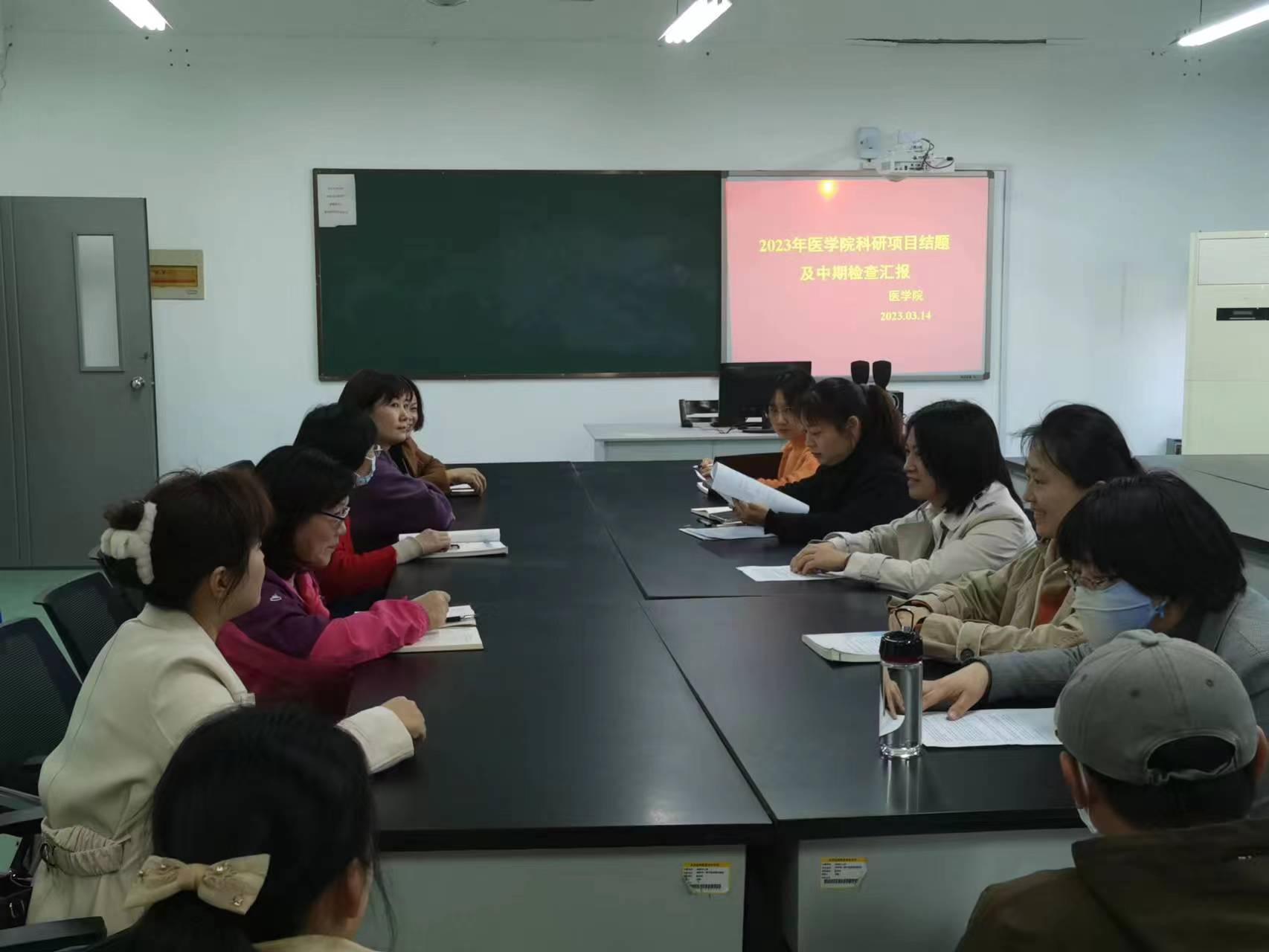 根據《安慶醫藥高等專科學校科研計劃項目管理辦法(試行)》文件要求,3月14日下午,醫學院2023年科研課題結題答辯于實訓中心舉行。專家評審委員會由來自安徽中醫藥大學發規處副處長蔡榮林、校內張愛榮教授、吳娟副教授、王娟副教授以及王陳妮副教授組成,對各級科研課題進行結題驗收評審。會議由醫學院黨總支書記、院長劉燕主持,學院黨政聯席會成員、專業負責任人、教研室主任及各項目負責人參會。