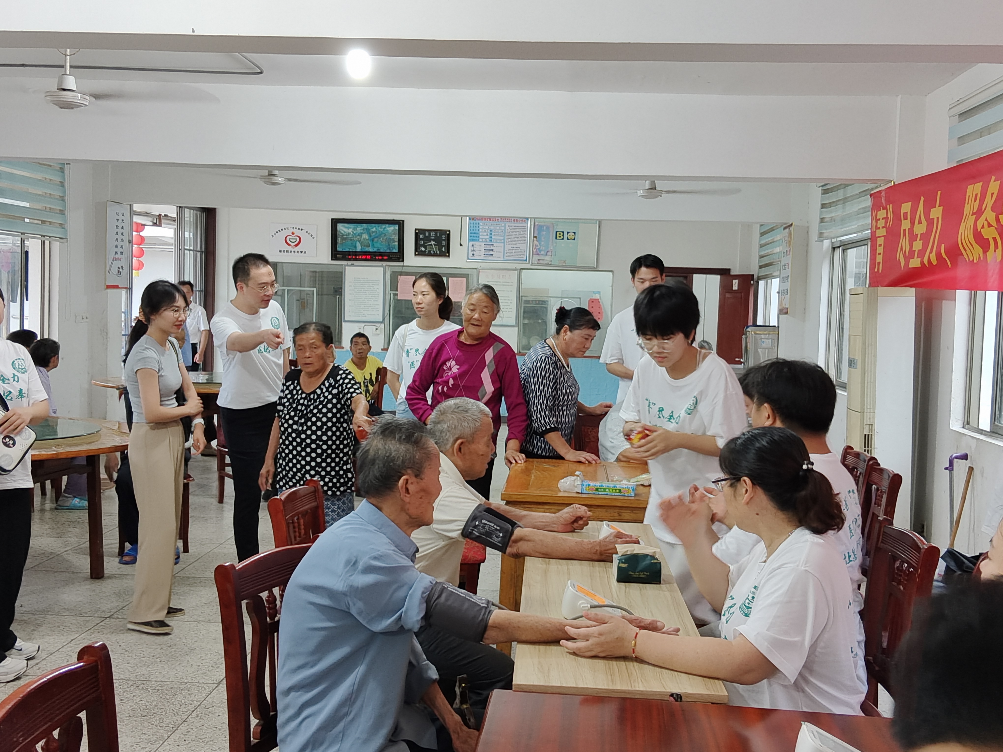 凝聚青春力量,展現“白衣”擔當。愛老、敬老一直是我們中華優秀的傳統美德。服務隊成員積極發揚服務基層的精神,赴懷寧縣月山雙七頤養中心,關愛中心老年人身體健康。頤養中心陳于勤院長,向隊員們介紹了當前中心發展現狀,并且正在積極探索“醫養結合”的新型養老模式,為老年人托起幸福“夕陽紅”。