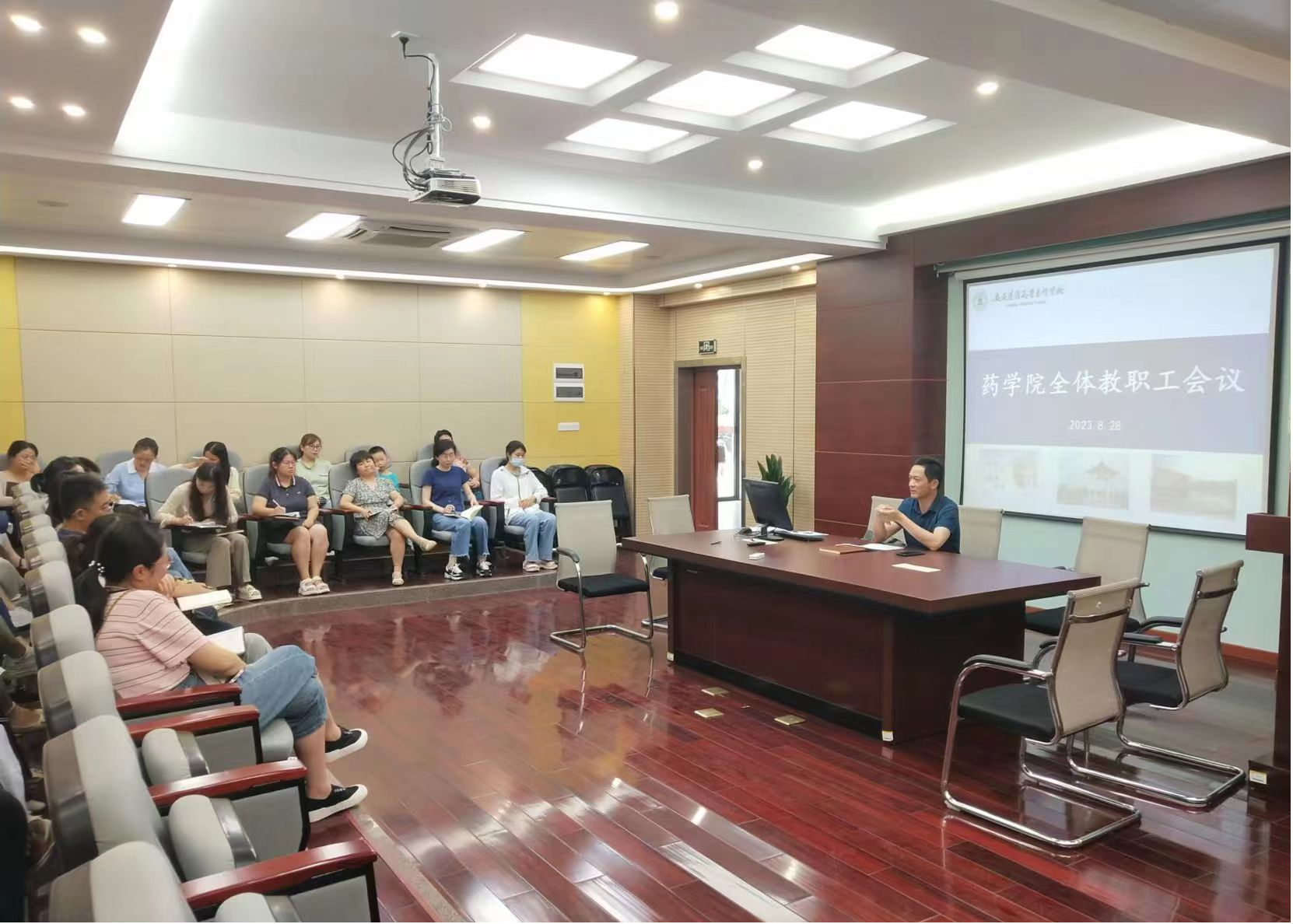 8月30日下午,藥學院在實訓樓一樓會議室召開新學期全體教職工大會。校黨委委員、藥學院院長劉毅主持會議。