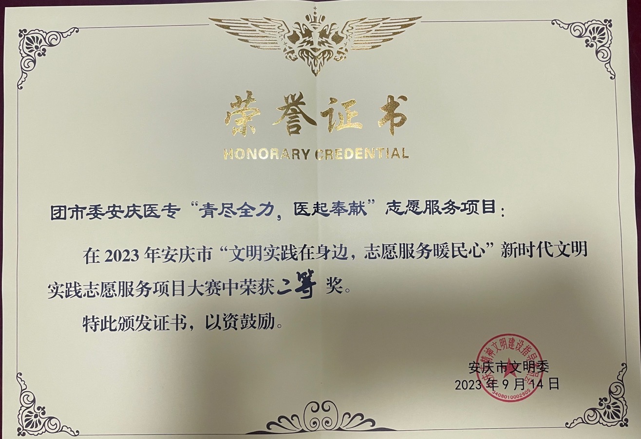 9月14日下午,2023年安慶市新時代文明實踐志愿服務項目大賽暨展示交流活動在潛山市新時代文明實踐中心舉行,我校“青醫”志愿服務隊打造的“青盡全力,醫起奉獻”志愿服務項目代表團市委參賽。團隊成員賽前積極準備、認真組織、努力謀劃,最終從全市16支參賽隊伍中脫穎而出,取得二等獎的好成績!