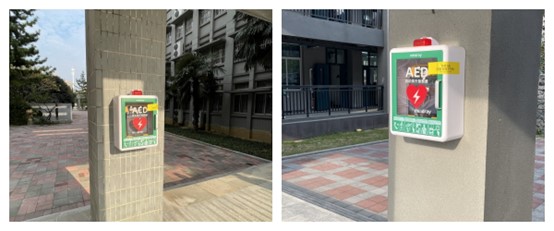 本次安裝的自動體外除顫器(AED)設(shè)備共計12臺,分布在教學(xué)樓、實訓(xùn)樓、宿舍樓等人員密集場所。