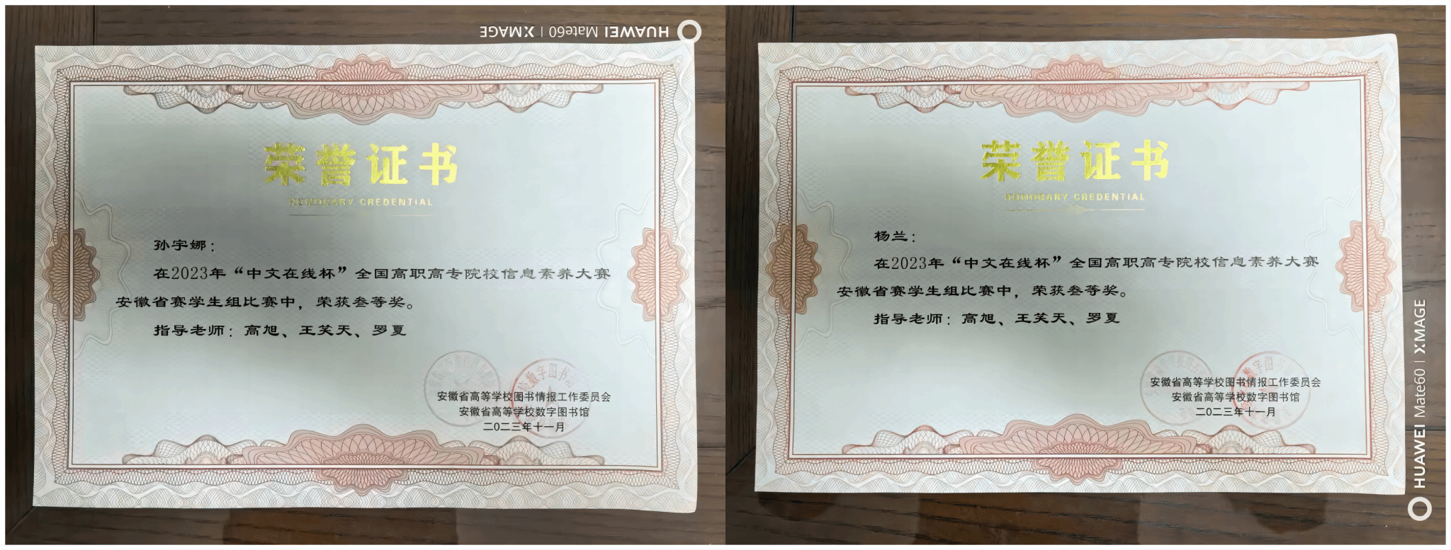 大賽分校賽(初賽)、省賽和國賽三個階段,校賽由各參賽學校圖書館舉辦。全省共有23所高職高專院校圖書館、5326名學生以及8名從事信息素養教育教學的教師參加初賽。我校5名學子通過校賽晉級省賽,經過角逐,護理(專科)23級13班潘睿、護理(專科)23級2班吳婉怡、22級臨床試驗醫學班楊子瑋喜獲安徽省省賽二等獎,護理(專科)23級1班孫宇娜、護理(專科)23級2班楊蘭喜獲安徽省省賽三等獎;其中潘睿和吳婉怡晉級國賽,參加了國賽第一輪的競爭。我校圖書館獲最佳組織獎,比賽指導老師為校圖書館高旭、王笑天、信息技術中心羅夏。