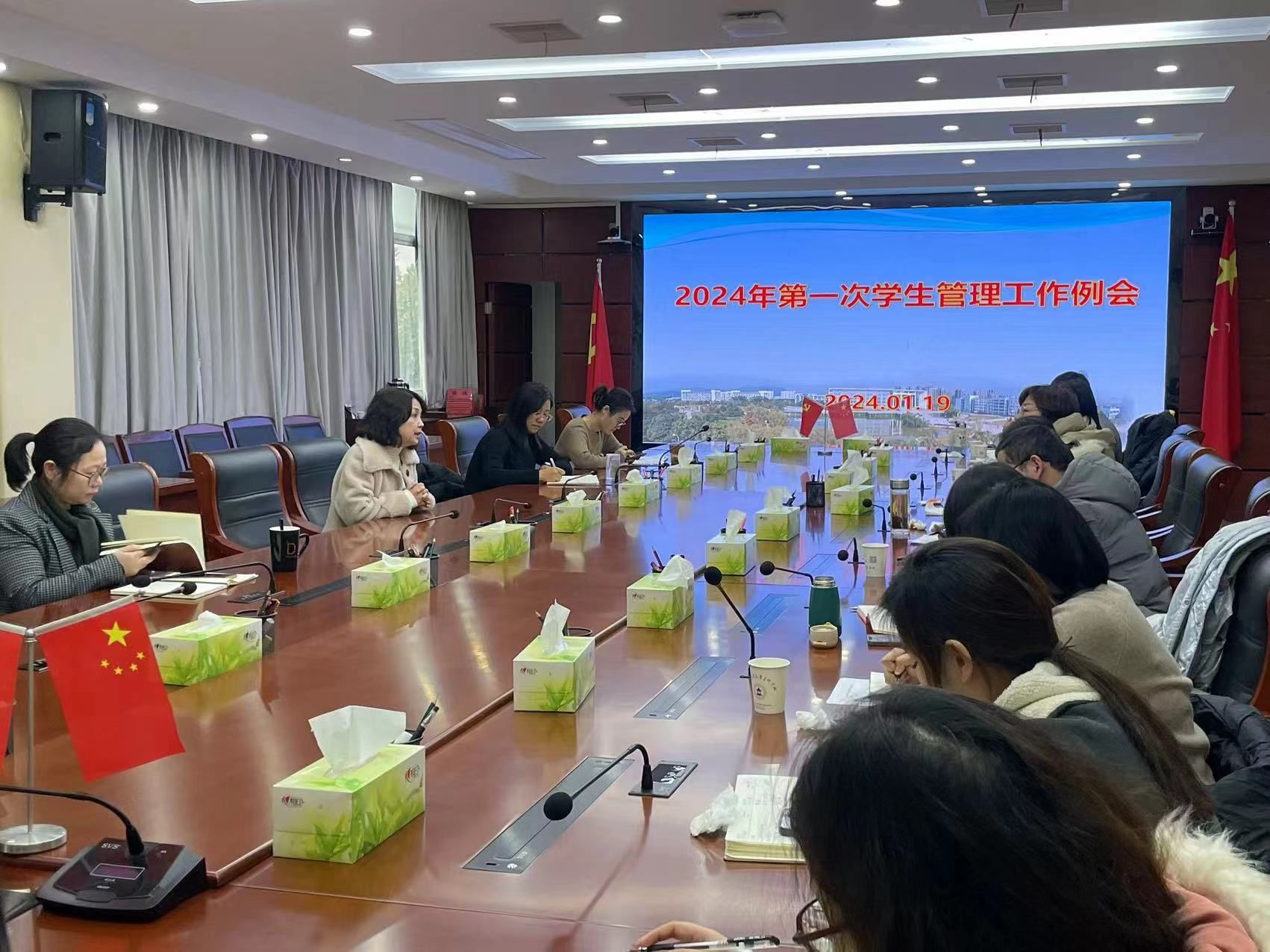 為全面總結2023年學生管理工作,安排部署寒假前后重點工作以及謀劃2024年學生管理工作,1月19日,我校在行政三樓大會議室召開了2024年第一次學生管理工作例會,分管校領導陳琪出席會議并講話,學生處、團委、各二級學院相關負責人和學管干部等參加會議。