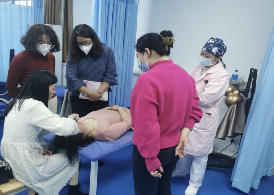 安慶市中醫(yī)院潮麗娜老師向大家演示和講解推拿的操作手法及注意事項,基礎(chǔ)護理教研室許娟老師演示銅砭刮痧操作,并講解注意事項。隨后老師們就操作和教學過程中存在的問題進行了交流,對利用現(xiàn)代化教學手段提升教學效果等方面展開了熱烈的討論,最終對實訓教學內(nèi)容及形式達成了共識。
