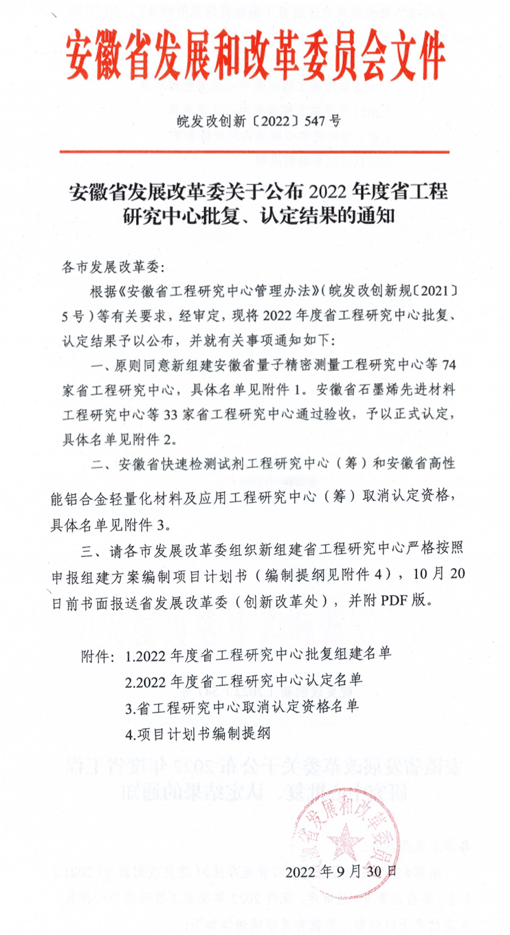 高瞻遠矚施戰略,同心同德共奮進。近日,安徽省發展和改革委員會官網發布了2022年度安徽省工程研究中心評審認定結果名單,我校申報的“安徽省腰椎退行性疾病精準防治研究中心”獲批籌建,標志著學校在省級科創平臺建設方面取得新突破。