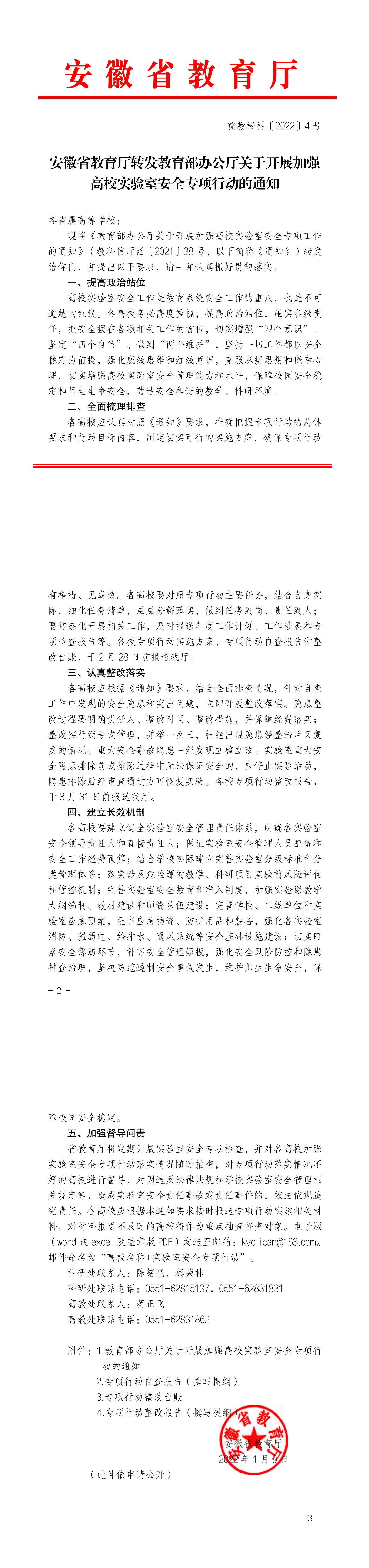 安徽省教育廳轉發教育部辦公廳關于開展加強高校實驗室安全專項行動的通知.pdf