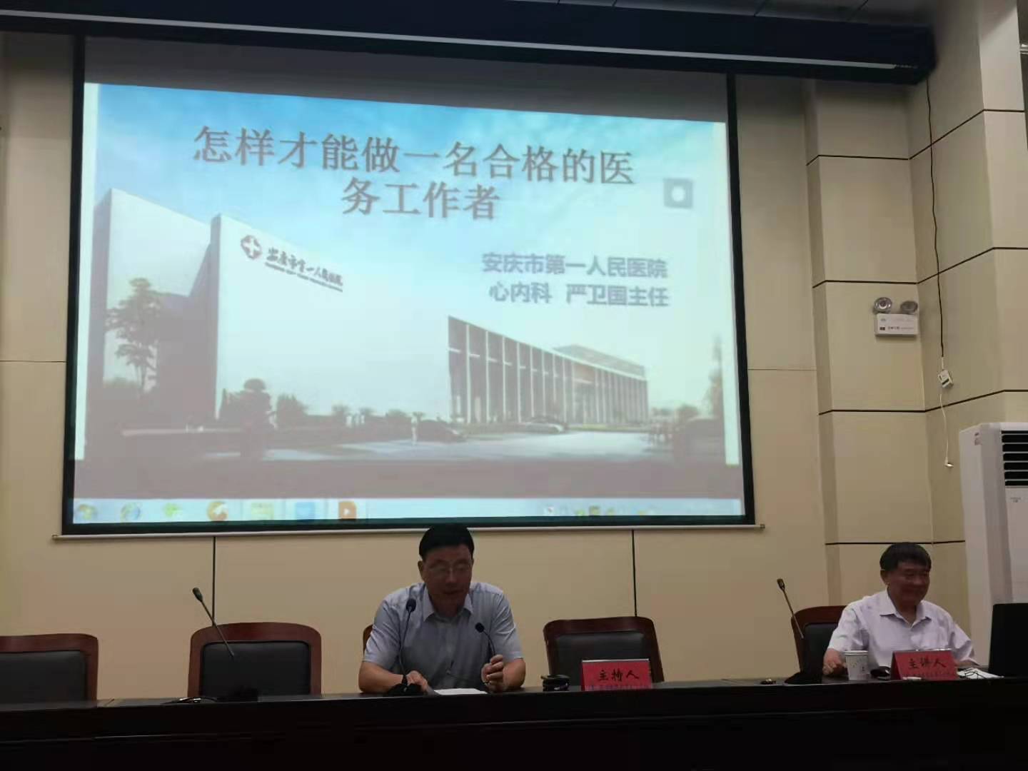 6月2日下午,我校邀請安慶市第一人民醫院心內科主任、全國衛生計生系統先進工作者嚴衛國在校學術報告廳作講座,講座主題為“怎樣才能做一名合格的醫務工作者”。講座由副校長朱慶豐主持,來自醫學系、藥學系和護理系近200名學生聆聽講座。