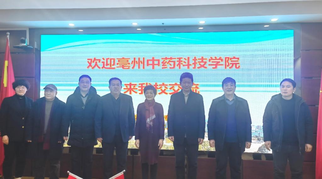 2月18日上午,亳州中藥科技學校黨委書記、校長李剛一行到我校考察交流,雙方就合作辦學事宜進行協商洽談。黨委書記葉林霞、校長姚文兵、副校長朱慶豐、教務處處長、辦公室等相關工作人員參加了交流座談。