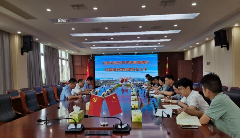 6月21日上午,省教育廳專家組一行來校開展2022年實驗室安全工作現場檢查。專家組由安慶師范大學汪德進教授擔任組長,王鈞偉教授、金寶石教授擔任組員。校黨委書記葉林霞、副校長朱慶豐出席匯報會,教務處、科技處、保衛處等職能部門及二級學院負責人參加會議,會議由朱慶豐主持。