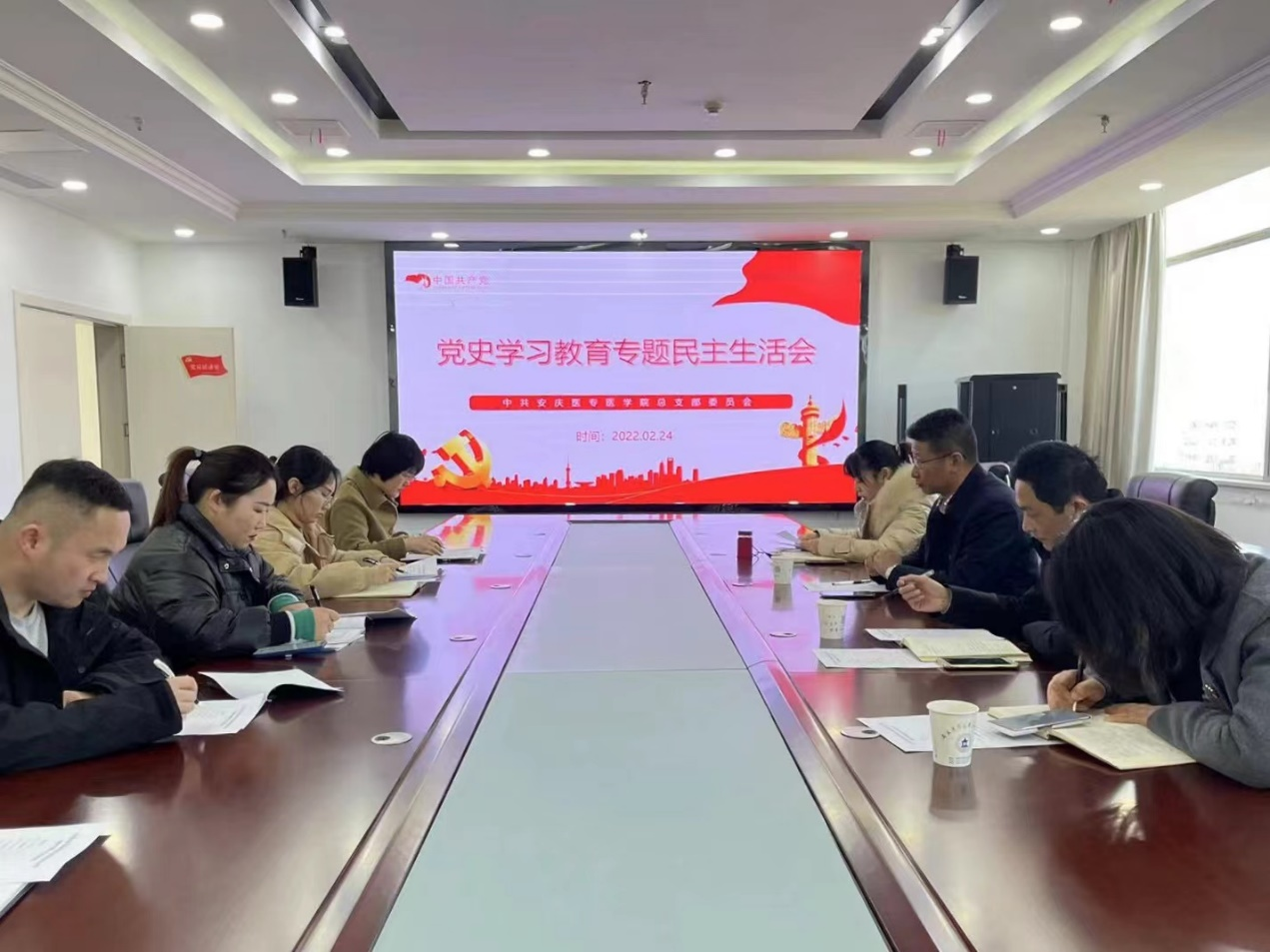 根據學校《關于認真開好黨史學習教育專題民主生活會的通知》要求,2022年2月24日,醫學院黨總支領導班子在圖書館六樓會議室召開黨史學習教育專題民主生活會。校黨委副書記、校長姚文兵、校黨委委員劉毅出席會議,校組織部相關人員到會指導,全體總支班子成員參加。會議由醫學院黨總支書記劉燕主持。