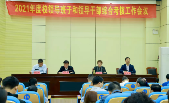 根據市委統一安排和部署,5月19日上午,2021年度學校領導班子和領導干部綜合考核大會在圖書館一樓學術報告廳舉行。以市委組織副部長,市人社局黨組書記、局長聶立新為組長的考核組一行6人來學校指導考核工作。學校領導班子成員,二級單位主要負責同志,在校市級以上“兩代表一委員”,學校教代會執委,副高以上職稱教師代表等70余人參加。會議由校黨委書記葉林霞主持。