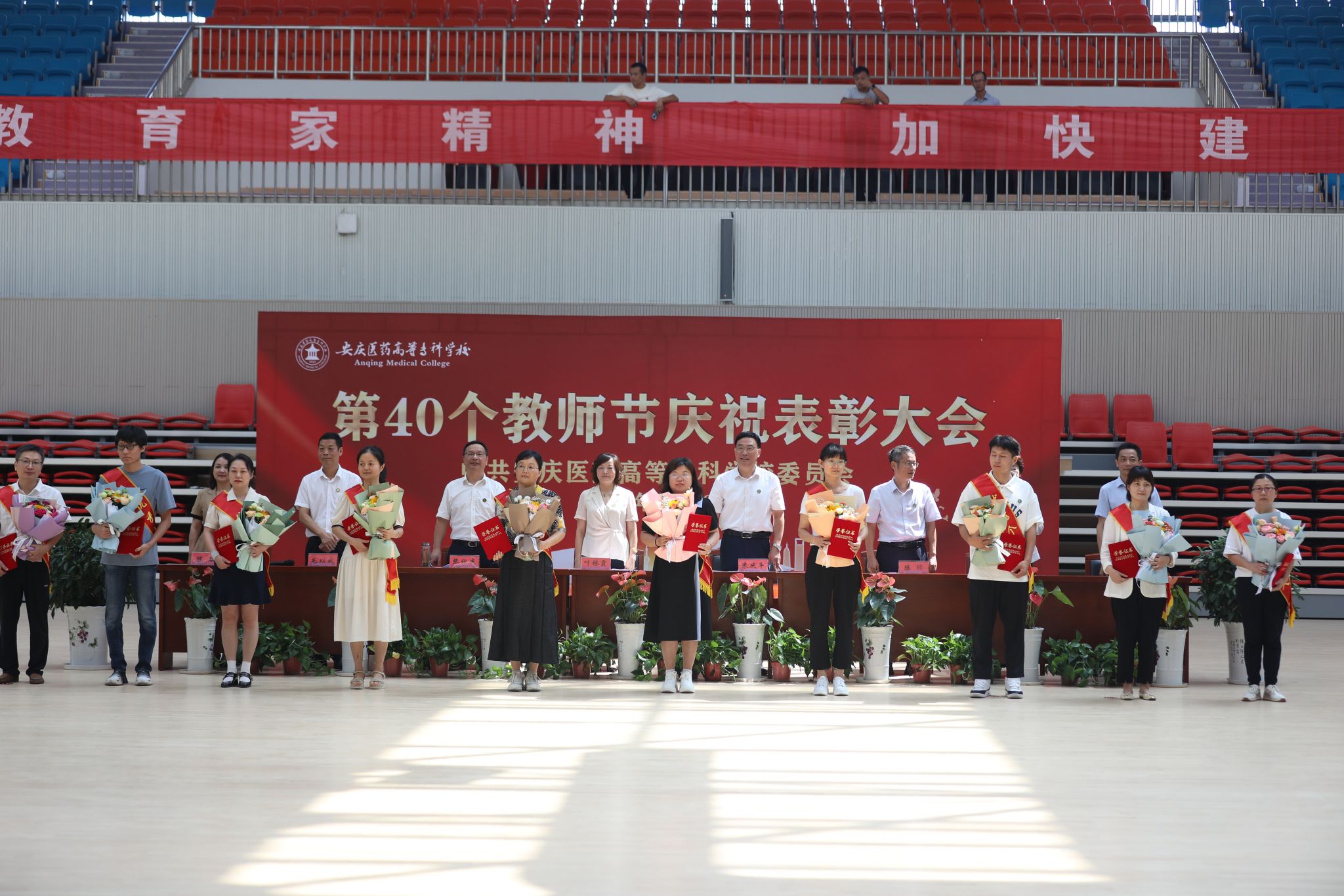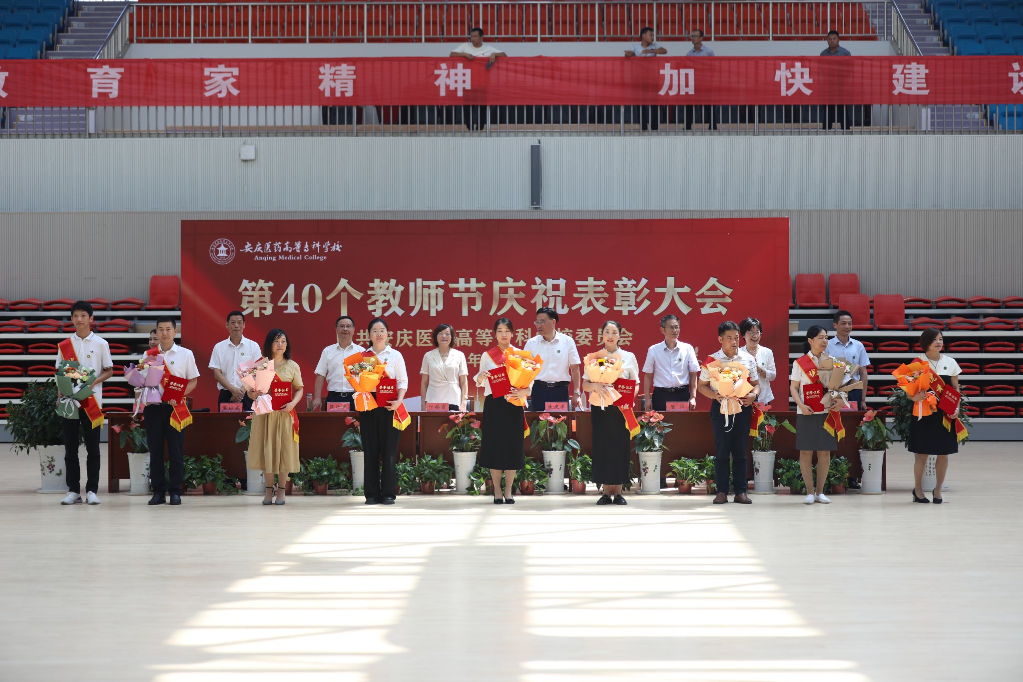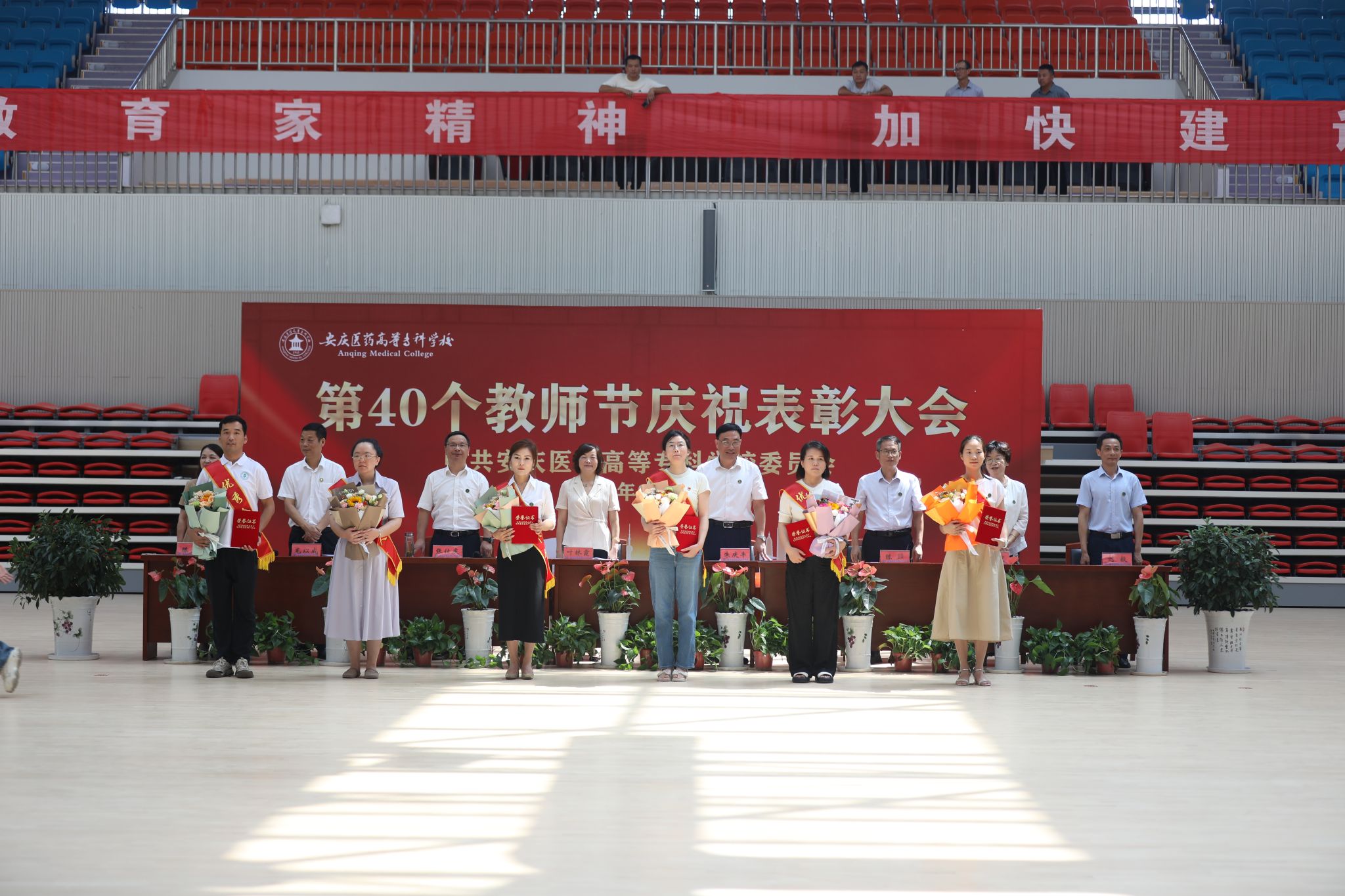 9月10日上午,以“大力弘揚教育家精神,加快建設教育強國”為主題的第40個教師節慶祝表彰大會在學校新建成的百花亭體育館隆重舉行。安徽省安慶市人大常委會副主任葉林霞、全體校領導班子出席會議。大會由校黨委副書記張仕慶主持。