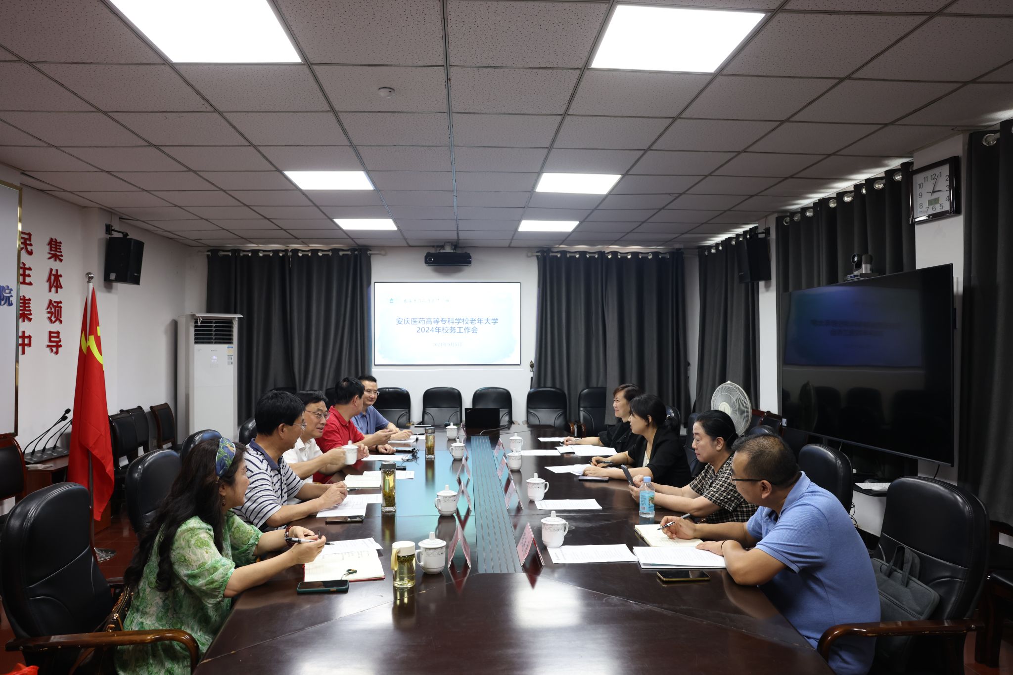 為進一步統一思想,凝聚力量,謀劃好新學期各項工作安排,2024年9月5日下午,校老年大學召開2024年秋季學期校務工作會議。校黨委副書記、校長朱慶豐出席會議,安慶一一六醫院、安慶市中醫醫院及校本部相關負責同志參會。會議由校老年大學常務副校長李少軍主持。