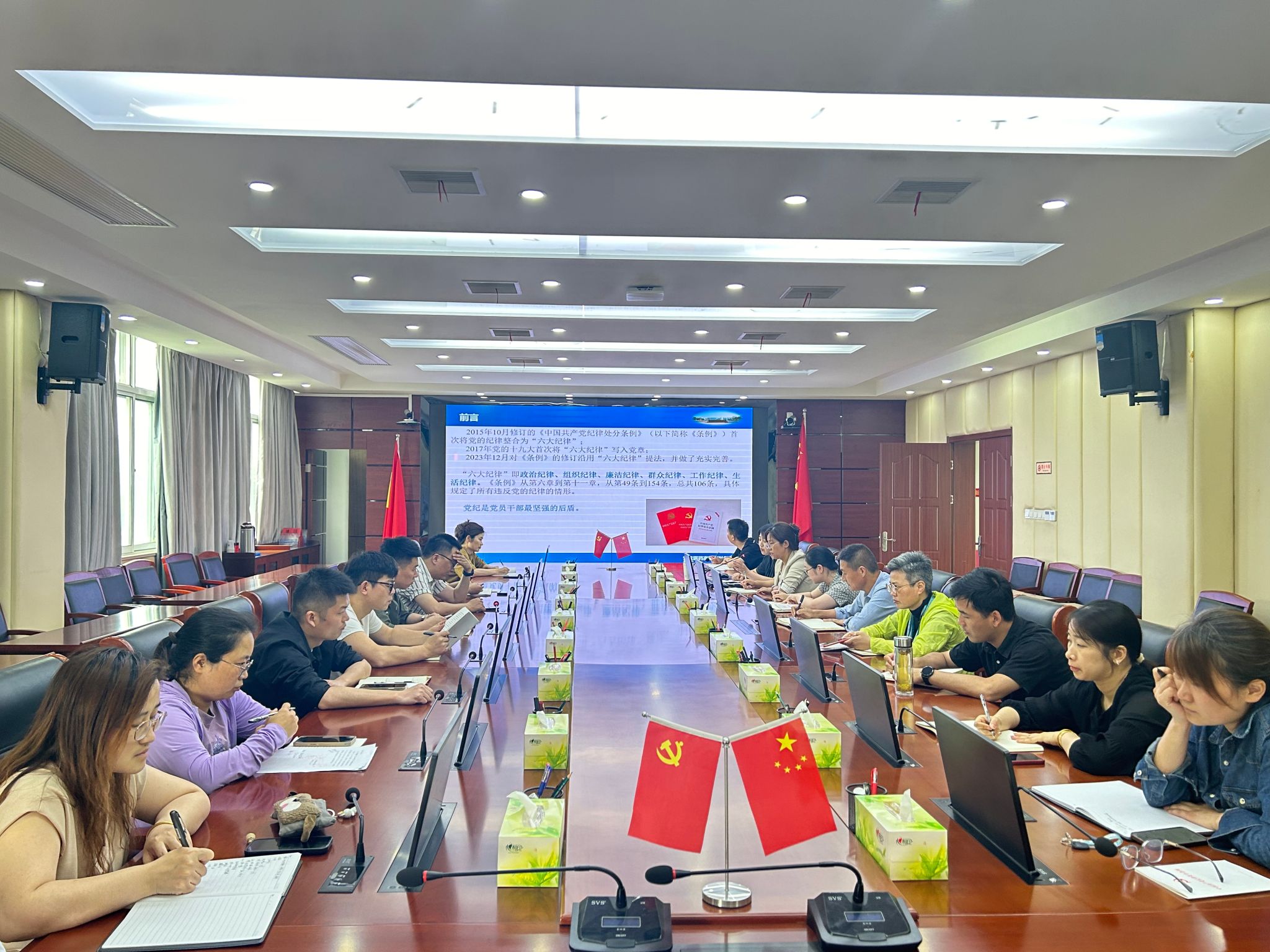 為進一步推動黨紀學習教育走深走實,6月4日中午在行政樓三樓大會議室,機關黨總支書記曹承嬌以《恪守“六大紀律” 筑牢思想根基》為題講授專題黨課,機關總支及下轄各支部支委均參會學習。
