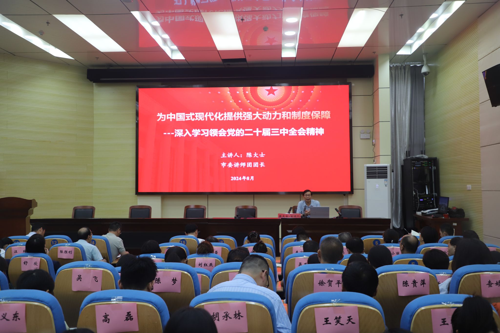 安慶市委講師團團長陳大士作首場報告,進行黨的二十屆三中全會精神宣講,從認識黨的二十屆三中全會重大意義和主題、深刻領會習近平總書記在全會上的重要講話精神、準確把握全會《決定》的主要內容、貫徹落實好全會精神等方面展開系統闡述。