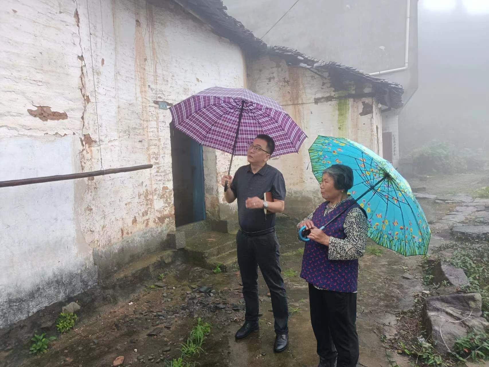聞“汛”而動、逆“水”而行。7月1日夜,龍河再遭暴雨襲擊,短時間降雨量激增至200毫米,沿村道路損毀十余處,多處山體出現滑坡險情,間接經濟損失達18萬元。2日一早,村兩委和駐村工作隊以“時時放心不下”的責任感和應對汛情“處處如履薄冰”的危機感,立即出動,分批分片駐點走訪。在橫山挨家挨戶送達《住房安全隱患防范措施告知書》,發放《崩塌、滑坡、泥石流等地質災害防災避險明白卡》;在黃屋安撫留守老人,查探年久失修老房;在吳屋現場勘測塌方險情,緊急報送出險三相電線桿編號。