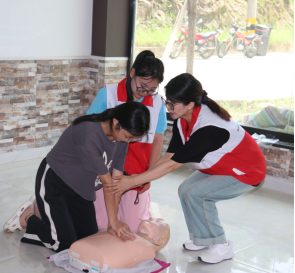 隨行的師生志愿者們還為龍河村民作應急救護和肺結核防治等科普宣講。